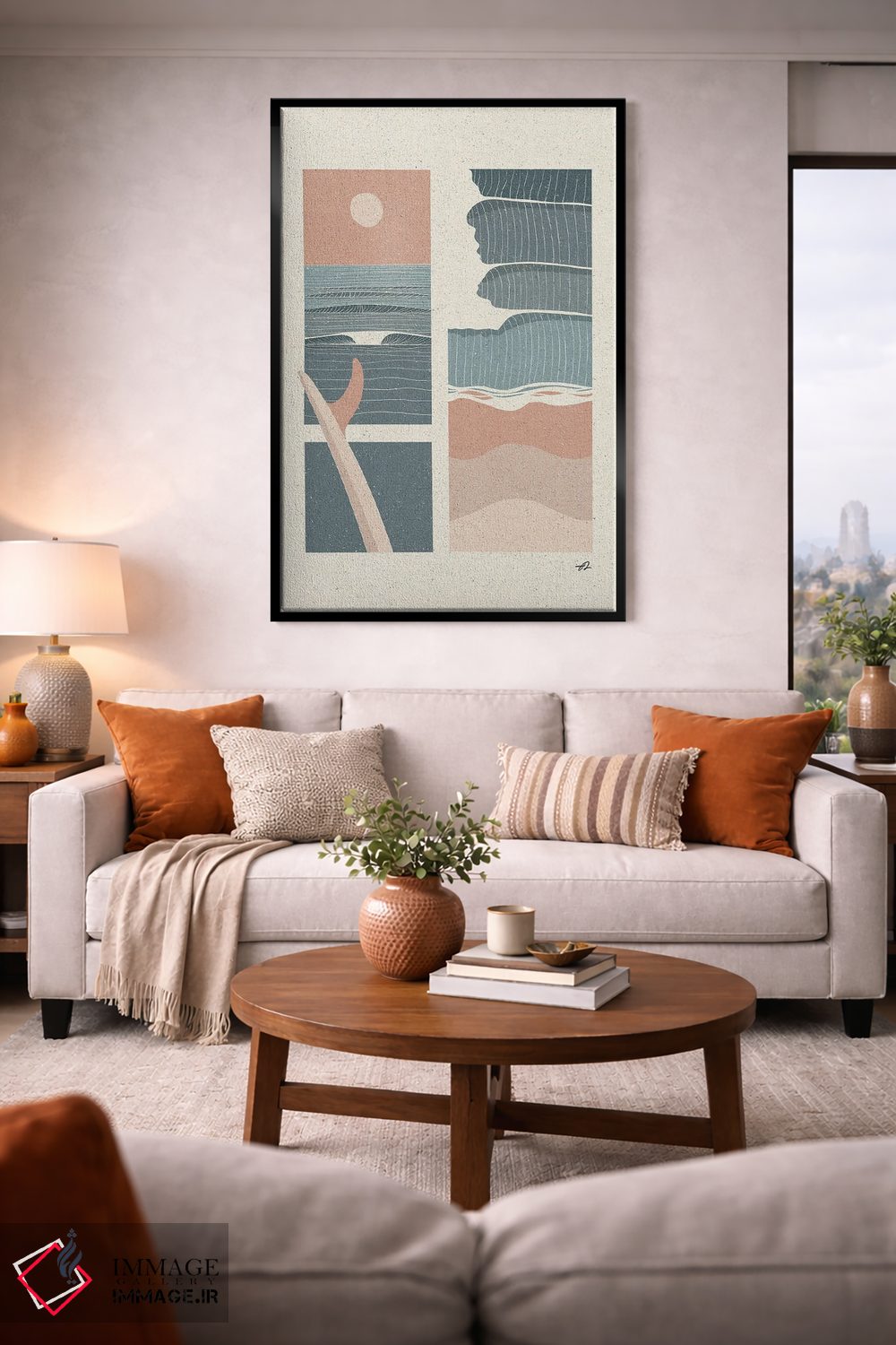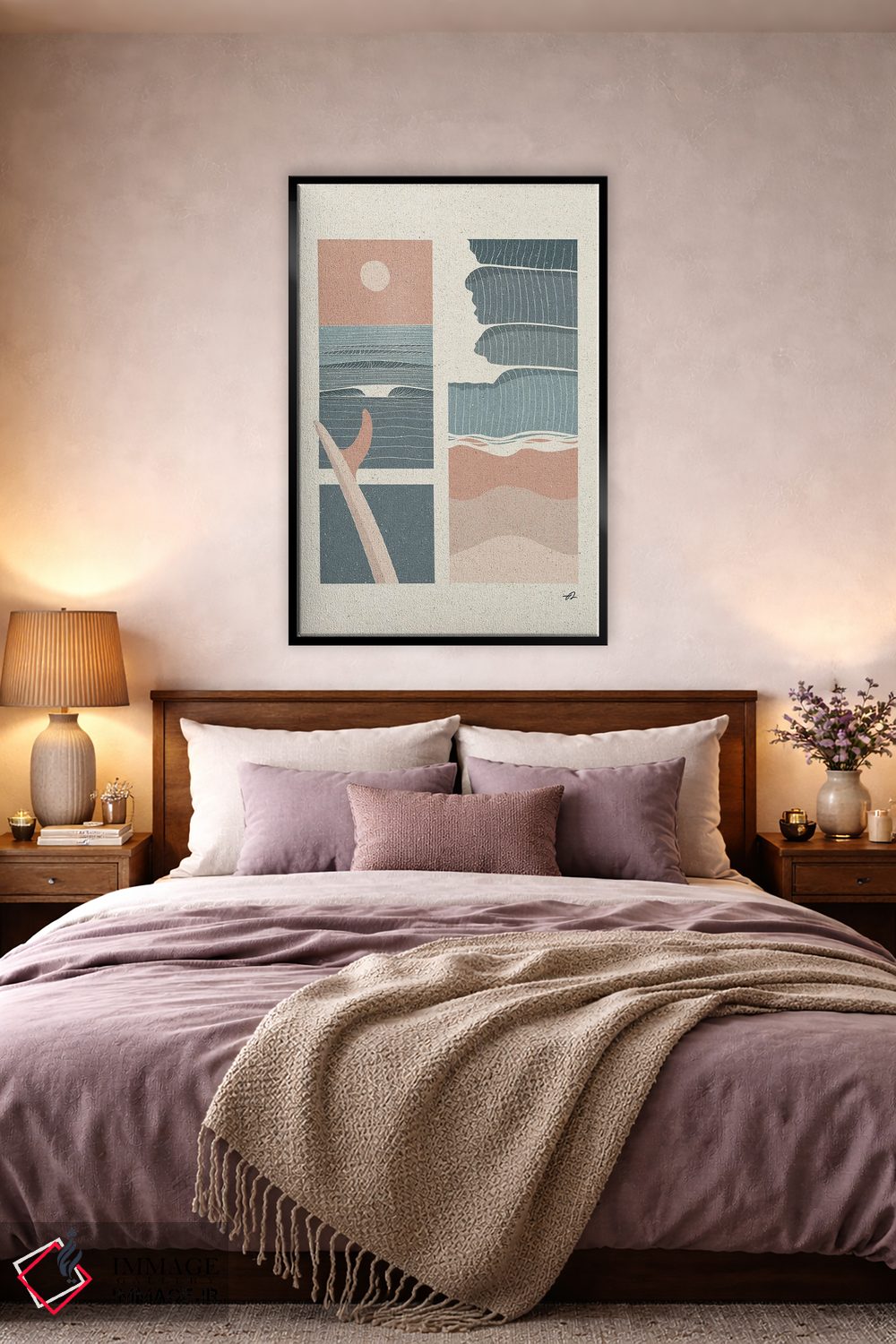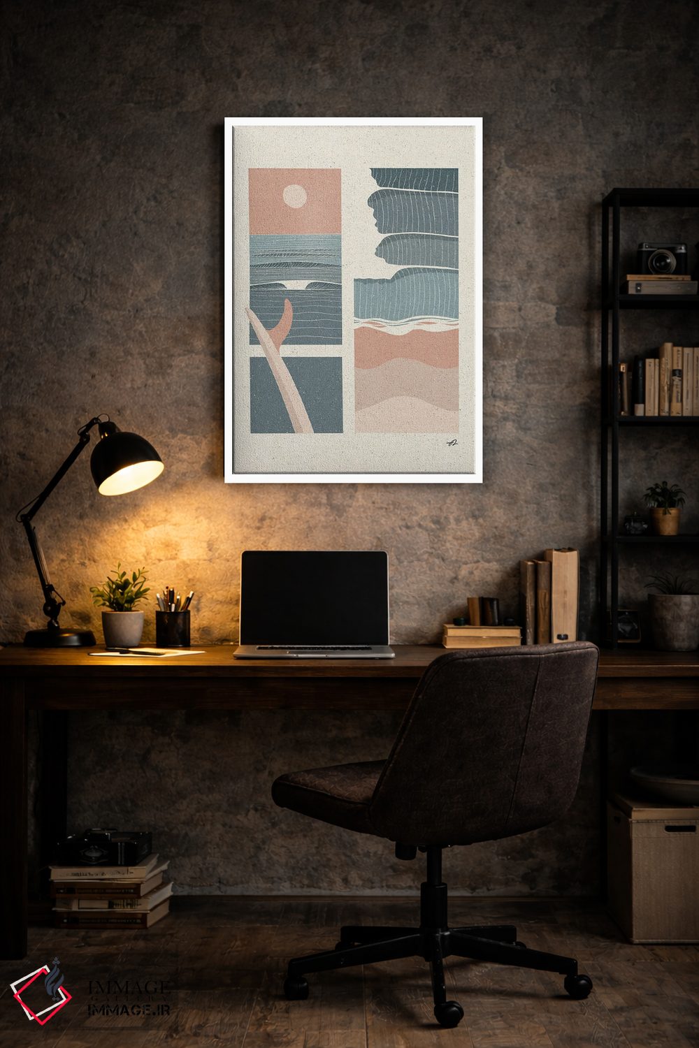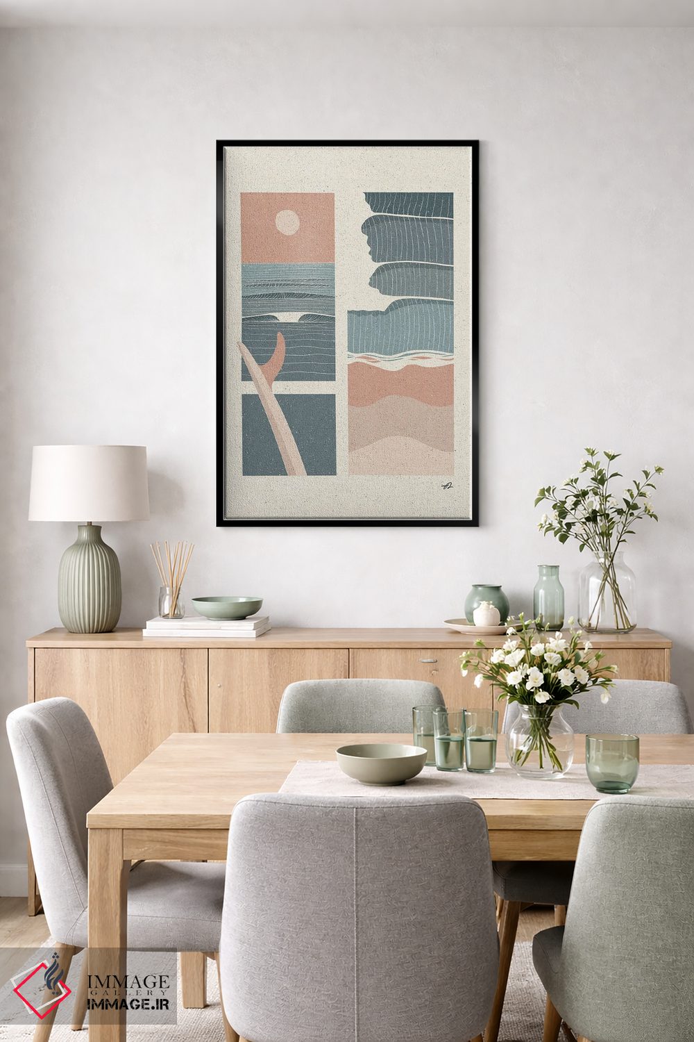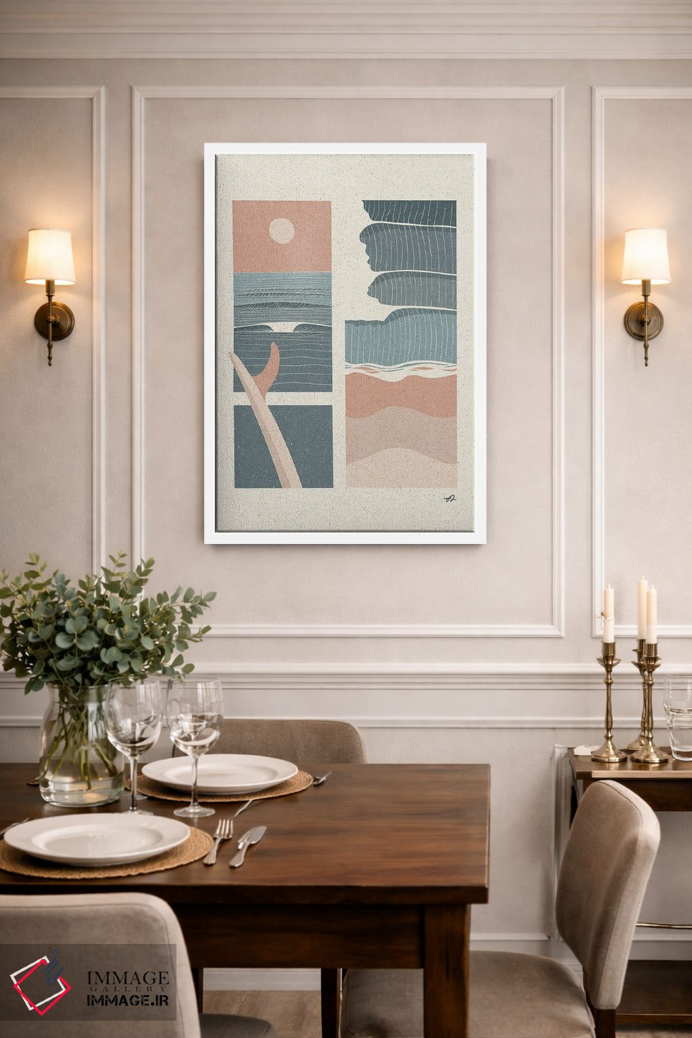 براساس پالت خنثی اثر، قاب بلوط روشن (چوبی) پیشنهاد اول است و استخوانی ملایم مکمل. برای سفارشهای پروژهای با ابعاد و قابهای اختصاصی با ایماژ در تماس باشید.