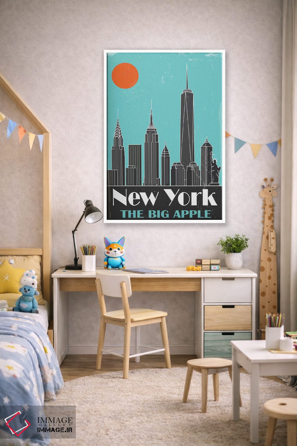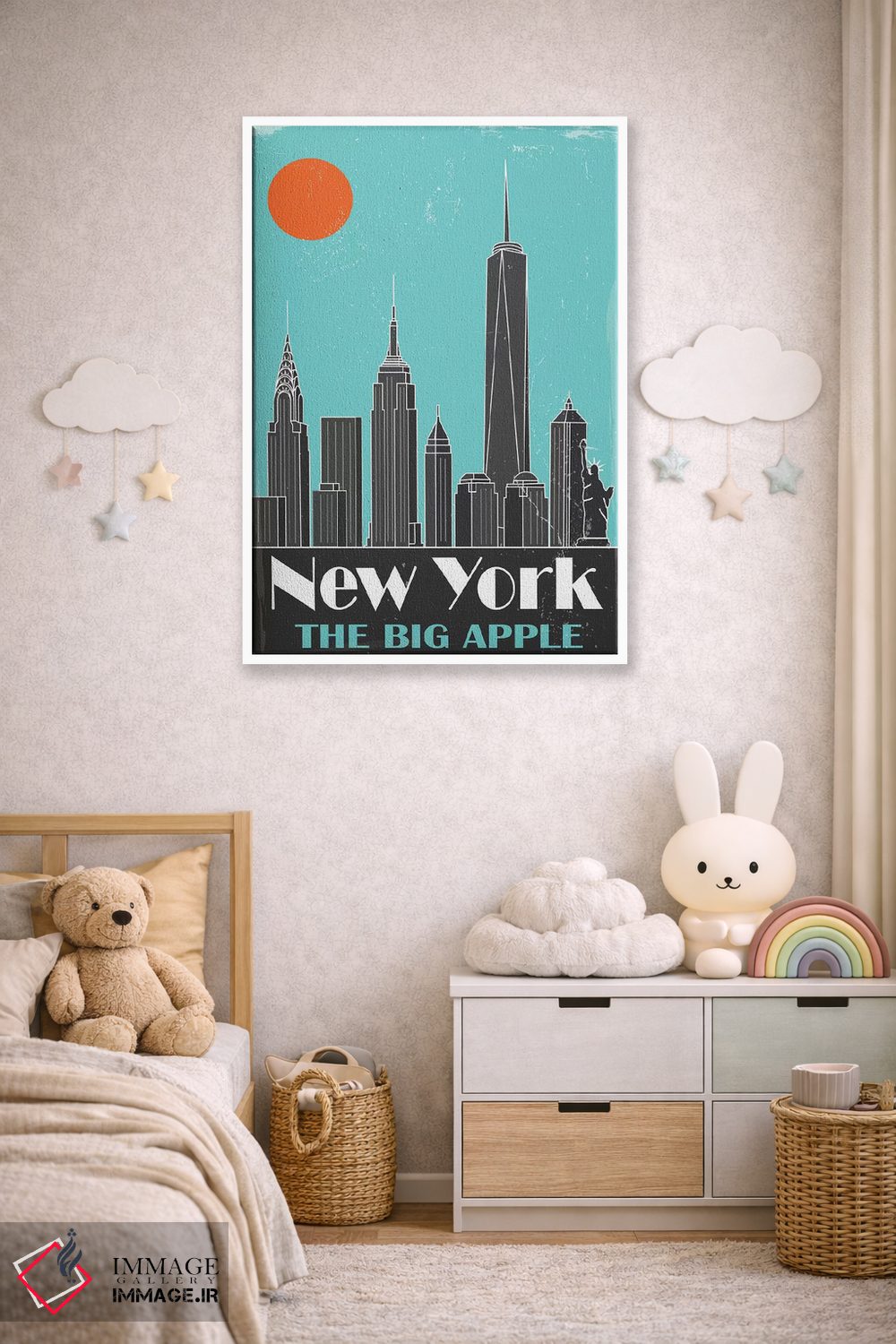 تابلو مدرن نیویورک، آبی آسمانی اثر فلای گرافیکس - نمای پرسپکتیو محصول