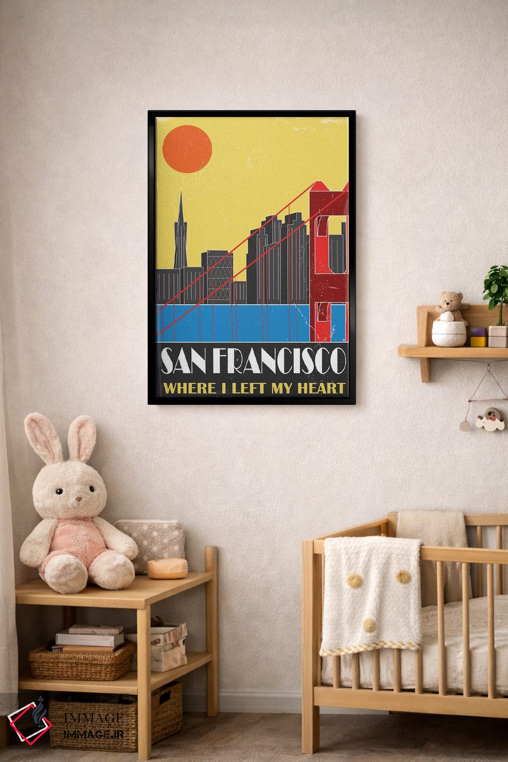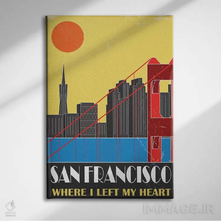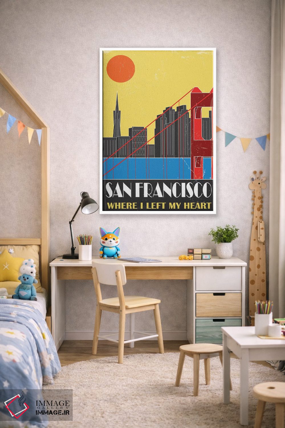 «سان فرانسیسکو، زرد» اثرِ «فلای گرافیکس (استودیو/برند هنری)» با حالوهوای این اثر و اجرای هنری، به فضا لطافت میدهد و برای کنار چوب روشن یا دیوارهای خنثی عالی مینشیند.