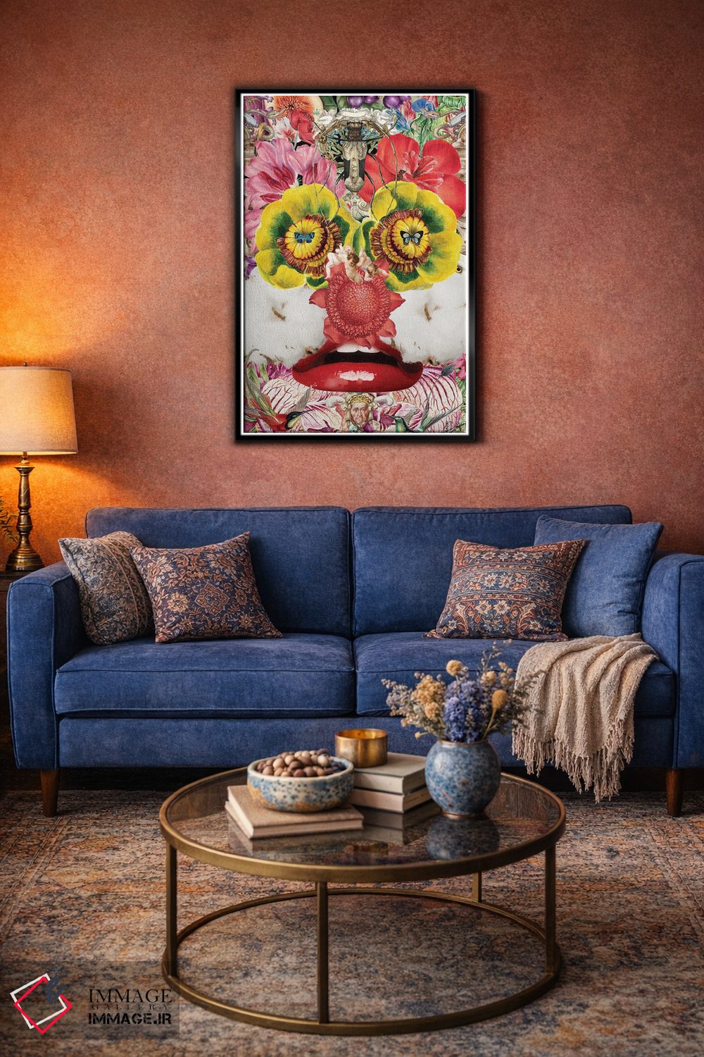 اگر میخواهید اثر برجستهتر شود، قرمز را در یک تابلو کوچک مکمل بهکار ببرید تا رنگها طبیعیتر در فضا پخش شوند. انتخاب قاب هم میتواند این اکسنت را تقویت کند.