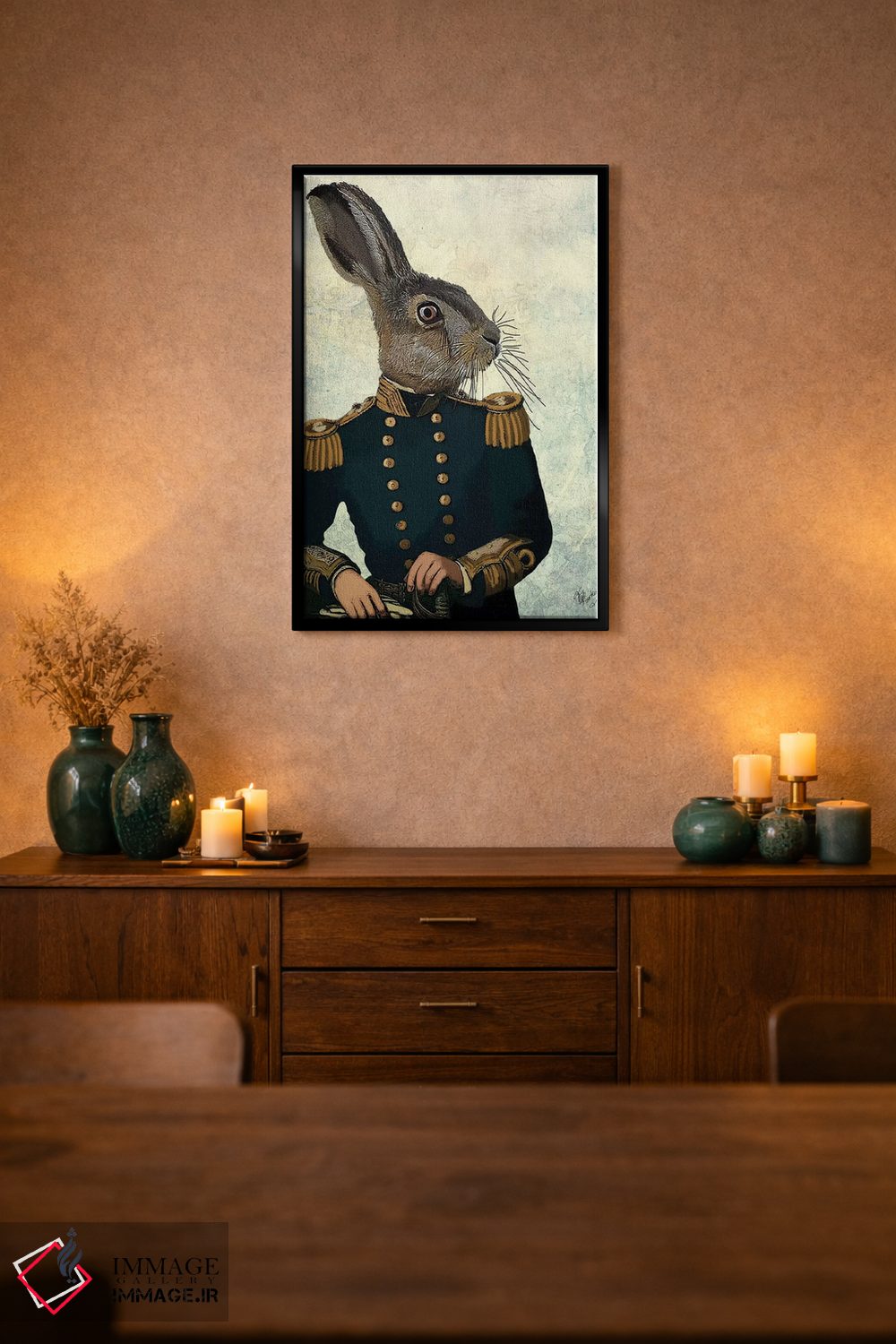 تابلو دکوراتیو ستوان خرگوش اثر فب فانکی - نمای قاب‌دار مشکی