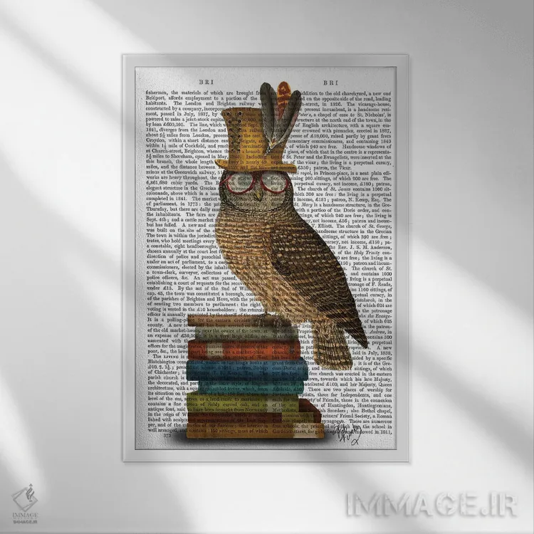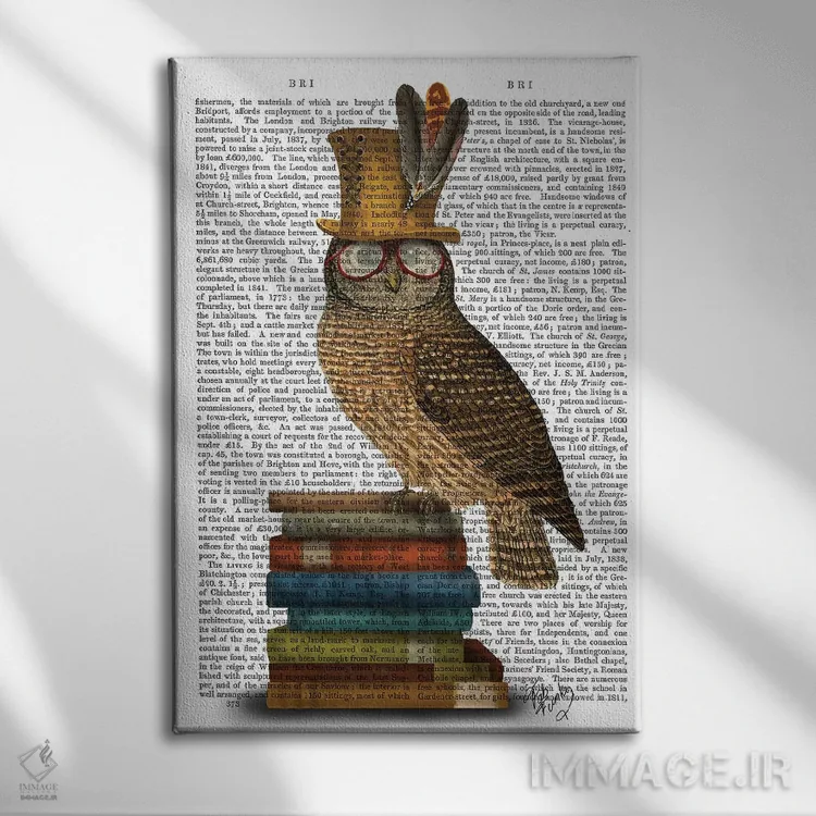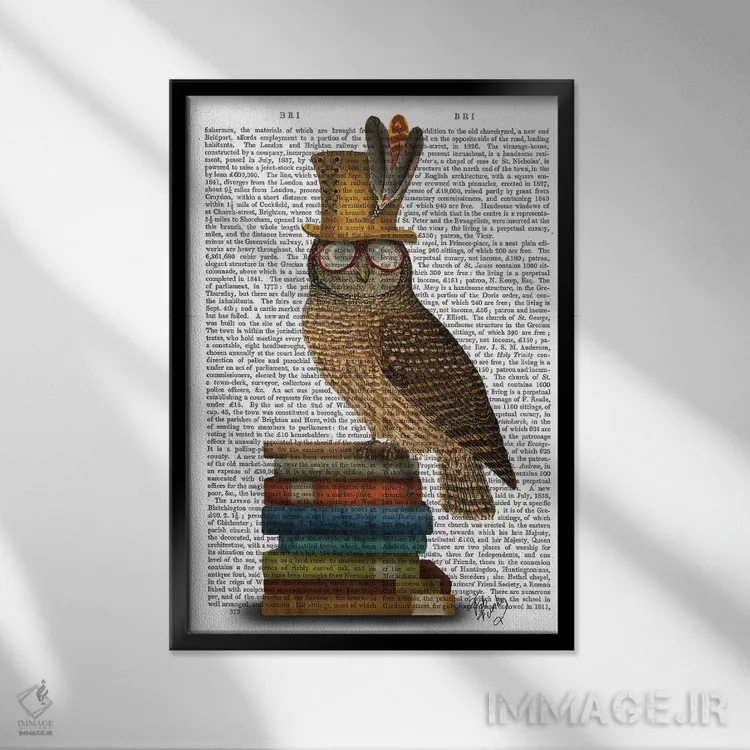تابلو دکوراتیو جغد روی کتاب ها اثر فب فانکی