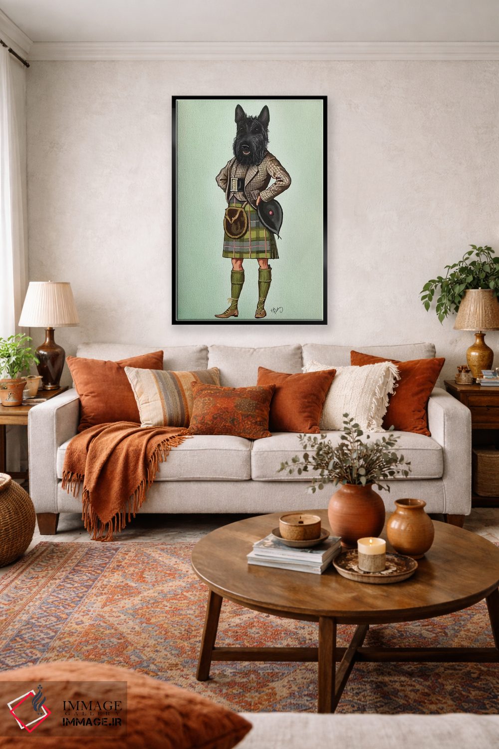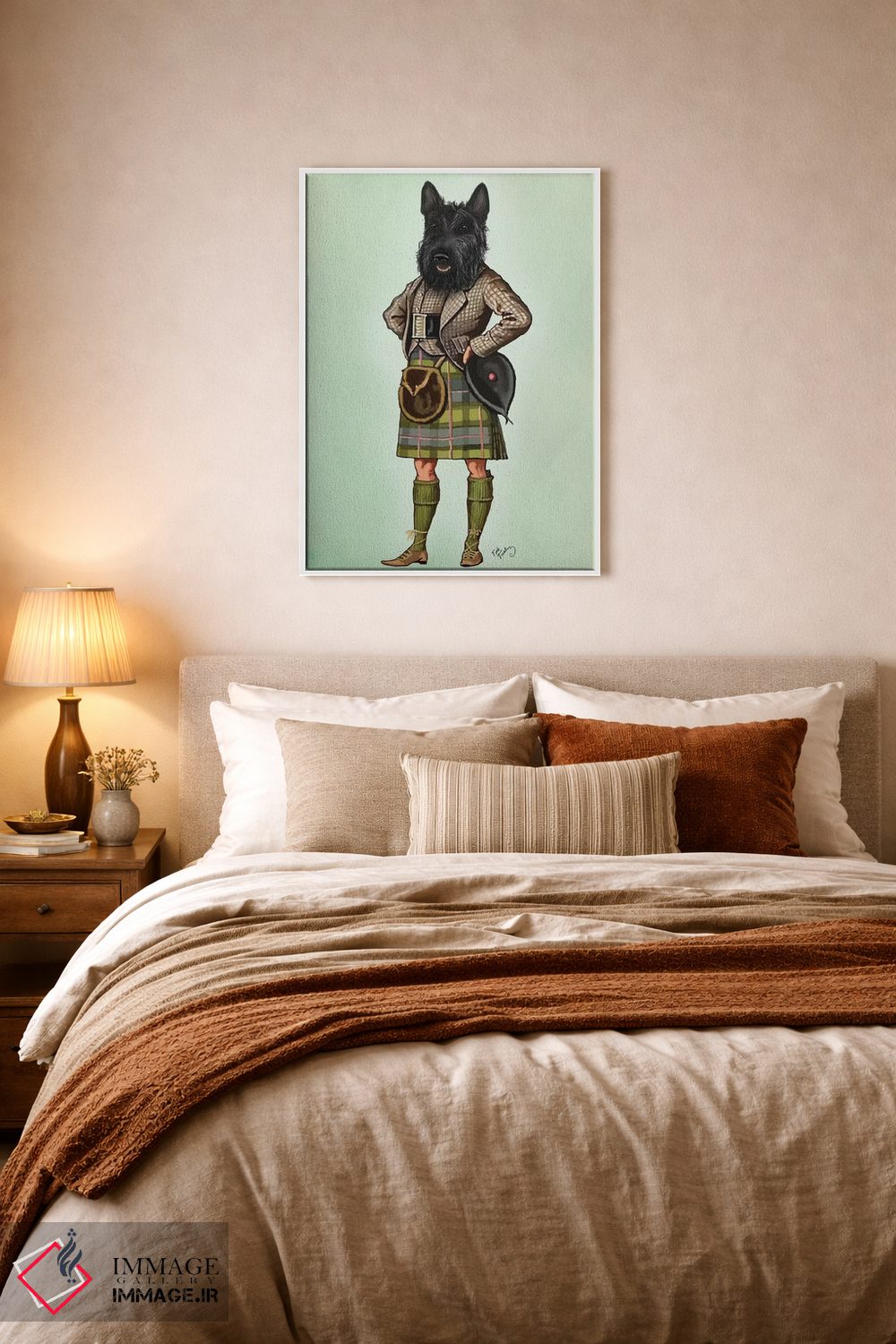 تابلو دکوراتیو تریر اسکاتلندی با دامن سنتی اثر فب فانکی