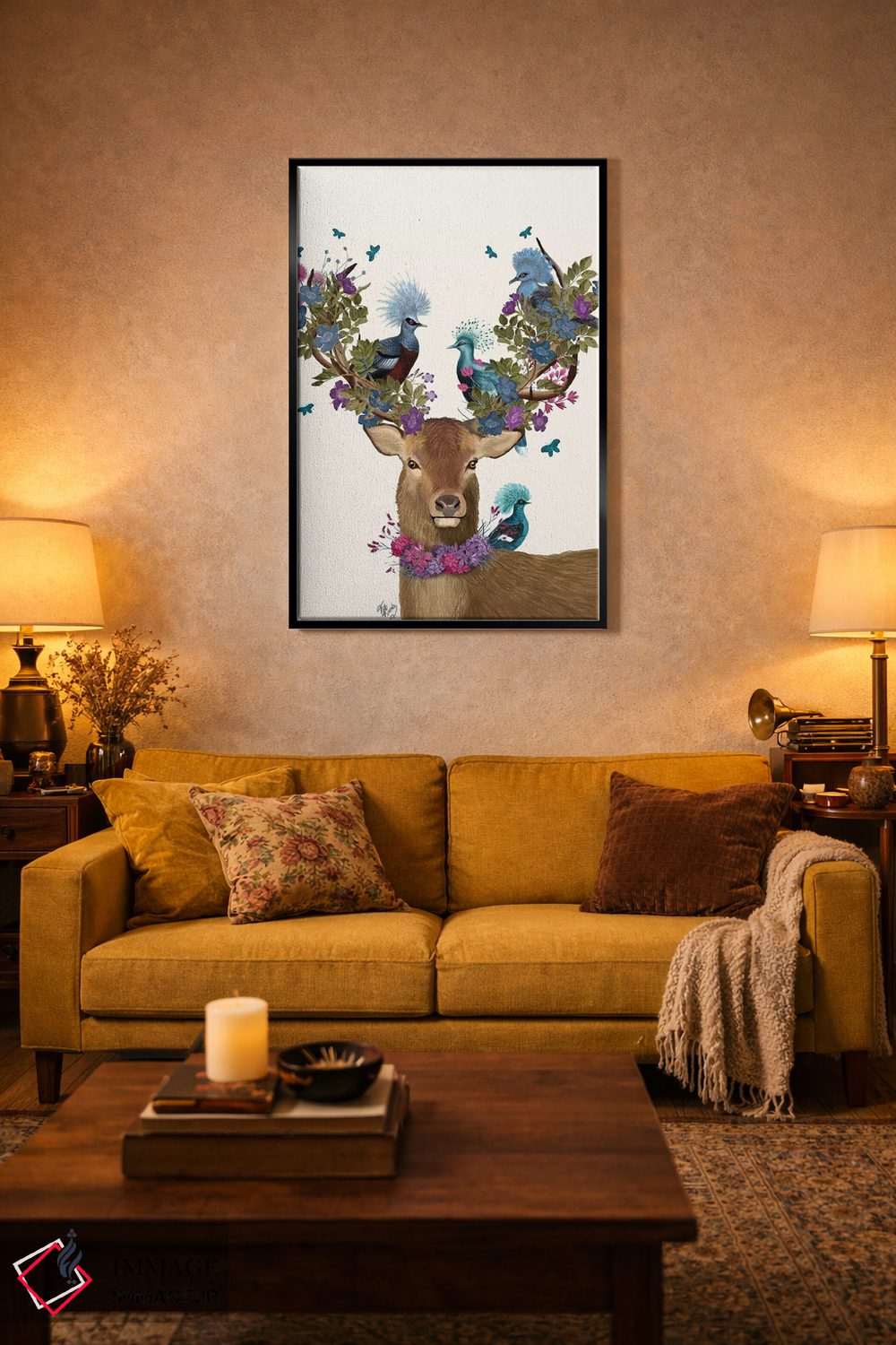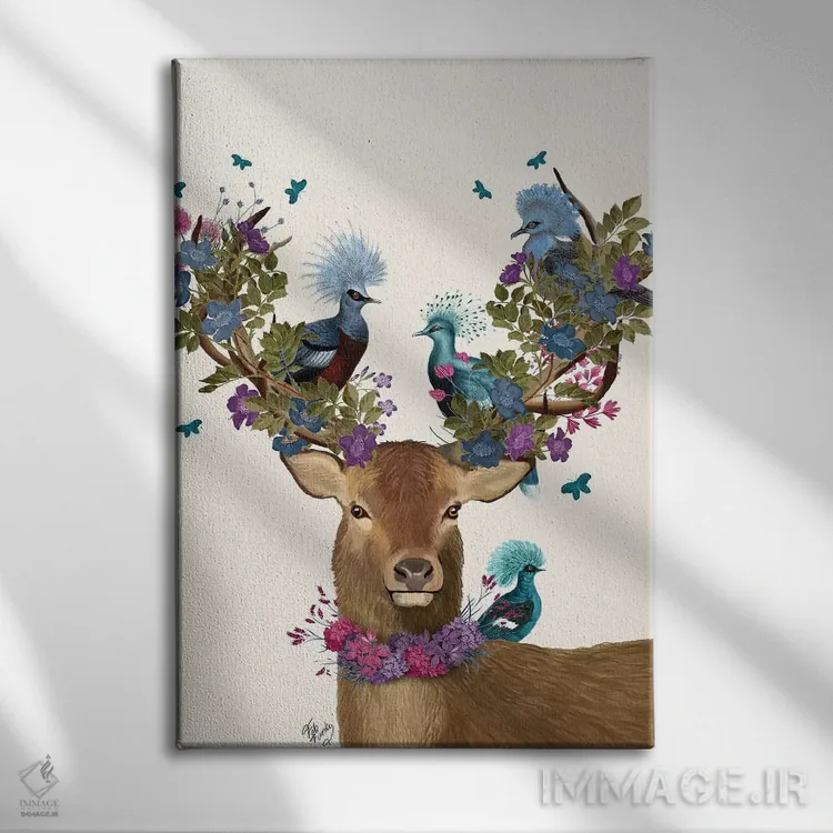 برای دکورهای صمیمی، «گوزن نگهبان پرنده، کبوترهای آبی» اثرِ «فب فانکی (استودیو هنری)» بدون کودکانه شدن، بازیگوش و خوشپرداخت میماند؛ برای فضاهای روستیک یا بوهو انتخابی خوشسلیقه است. به دیوار، قصه میدهد—اما قصهای آرام و شیک.