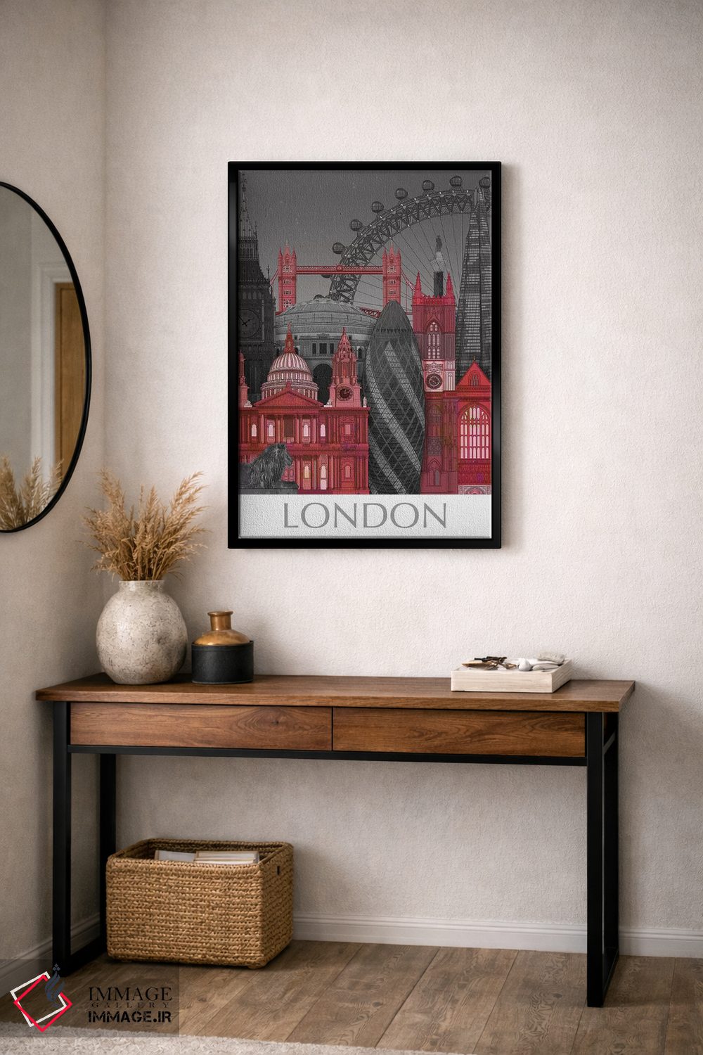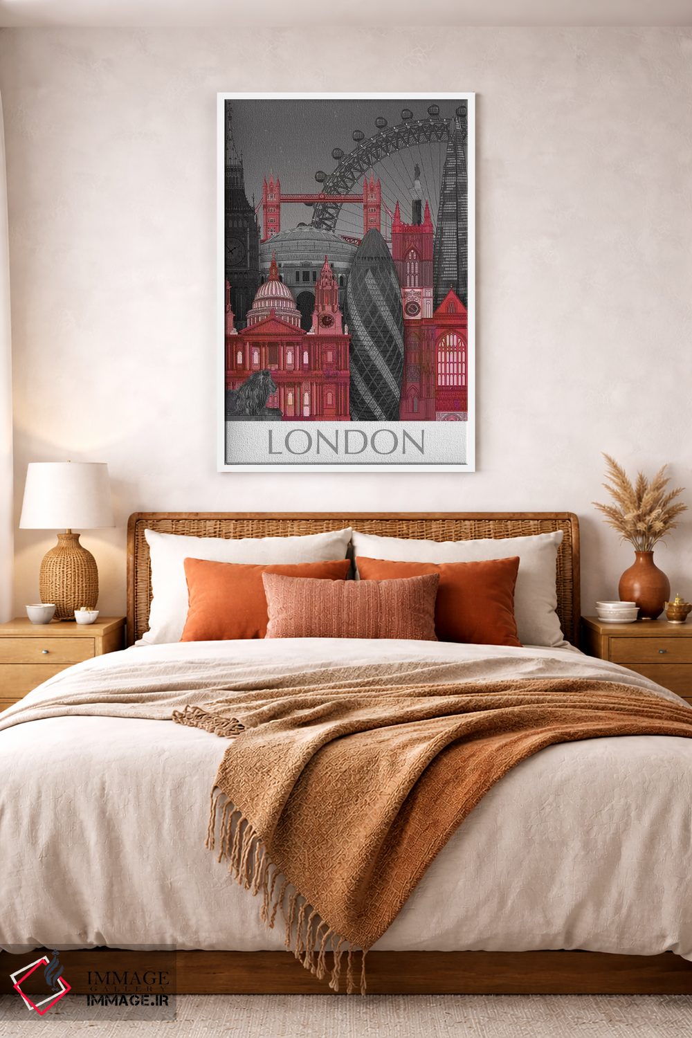 «نمای شب لندن به رنگ قرمز» اثرِ «فب فانکی (استودیو هنری)» میتواند فضا را روشنتر و زندهتر نشان بدهد؛ برای نشیمنهای صمیمی و پذیراییهای شیک پیشنهاد میشود. روی دیوار، طبیعی و متعادل دیده میشود—بیاغراق و درست.