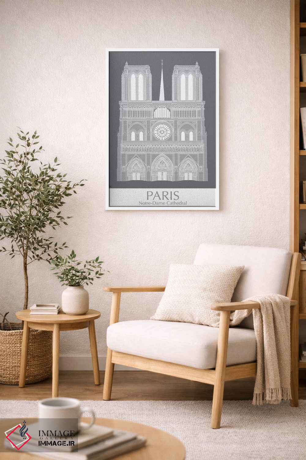 «نوتردام پاریس (تکرنگ)» اثرِ «فب فانکی (استودیو هنری)» با حالوهوای دکور معاصر و موضوعِ این اثر، برای نشیمنهای امروزی و چیدمانهای ساده انتخابی دقیق است.