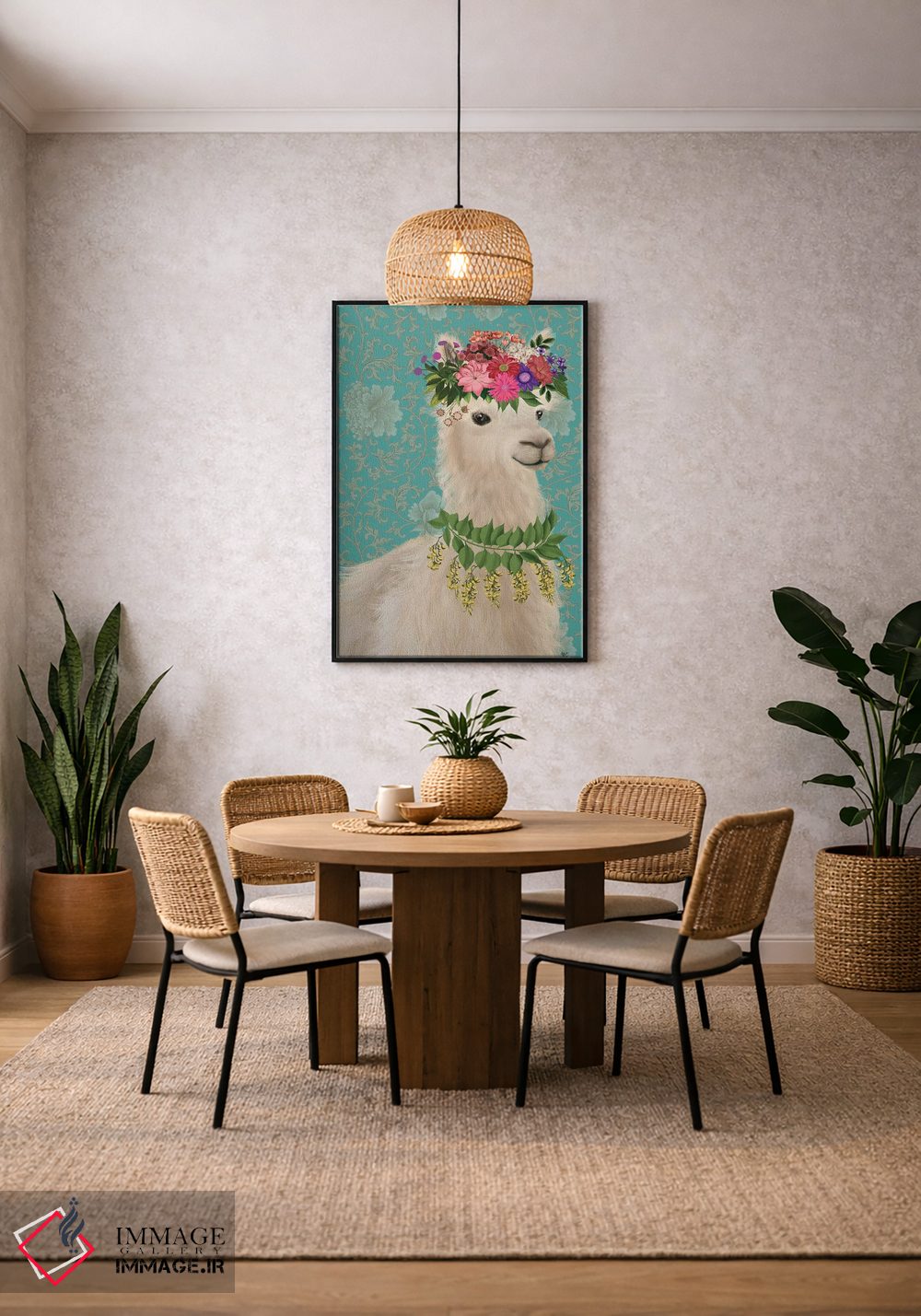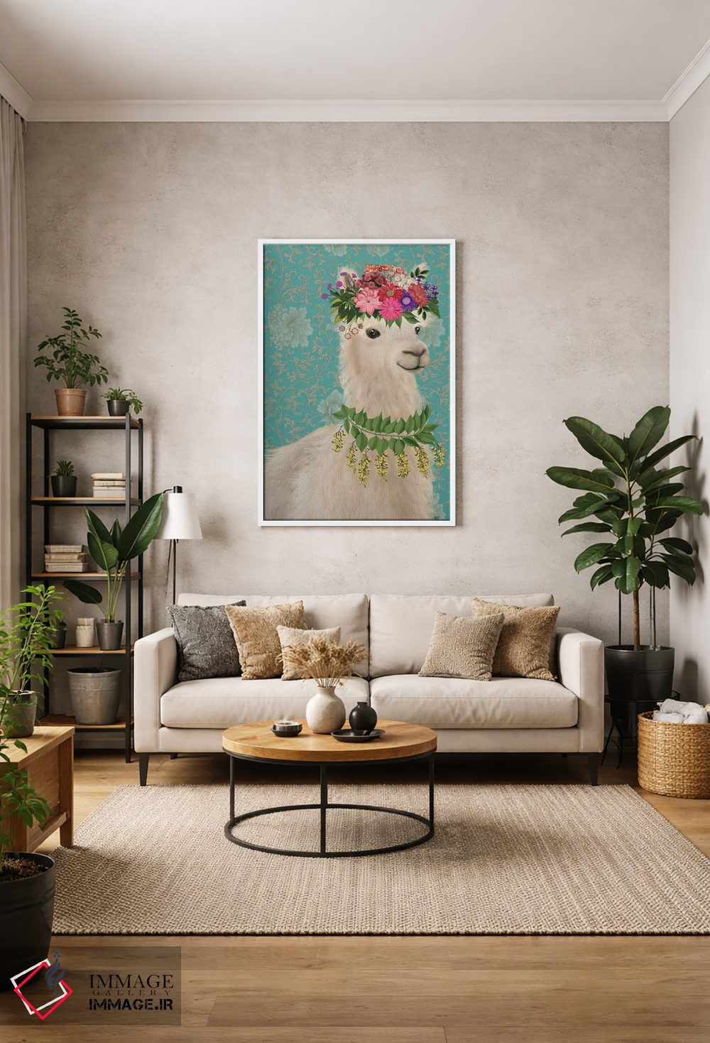 برای دیواری که میخواهید نرمتر دیده شود، «لاما کولیوار ۲» اثرِ «فب فانکی (استودیو هنری)» چیدمان را از خشکی بیرون میآورد؛ برای کنار میز آرایش یا کنسول انتخابی خوشسلیقه است. همیشه بهروز میماند و با فصلها خوب کنار میآید.