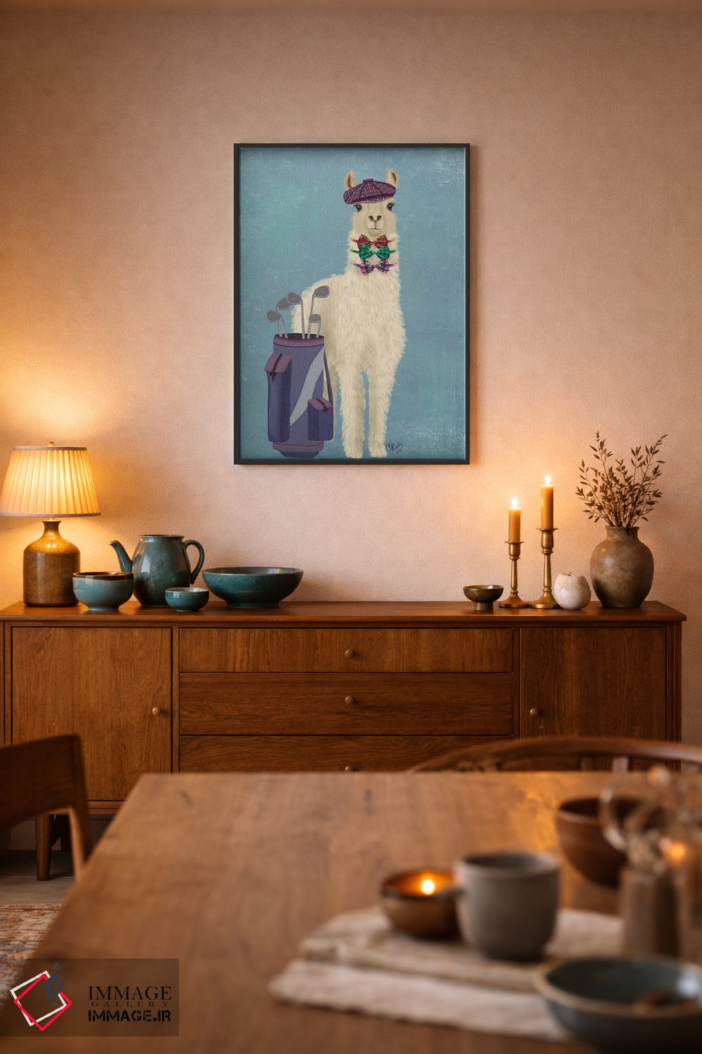 «لاما گلفباز» اثرِ «فب فانکی (استودیو هنری)» از آن کارهاییست که هم چشم را میگیرد، هم با چیدمانهای مختلف راحت ست میشود—بهخصوص در تم این اثر.