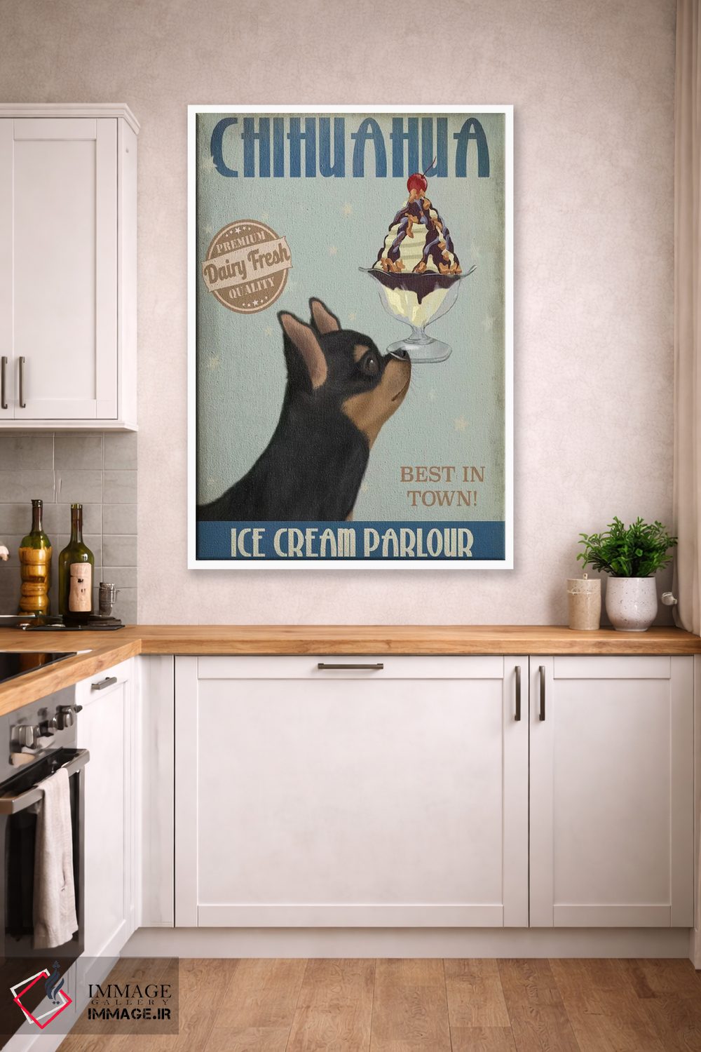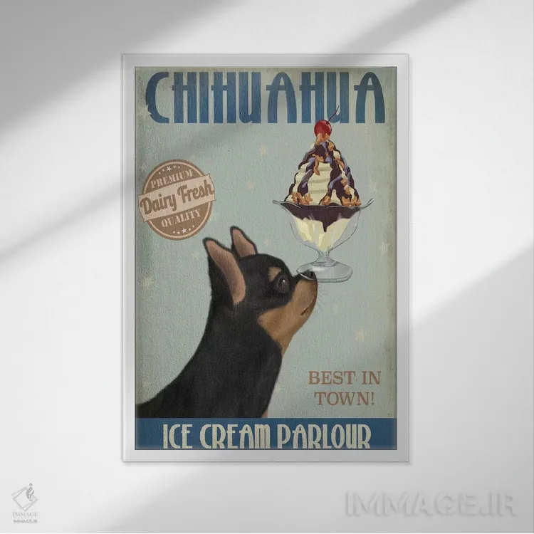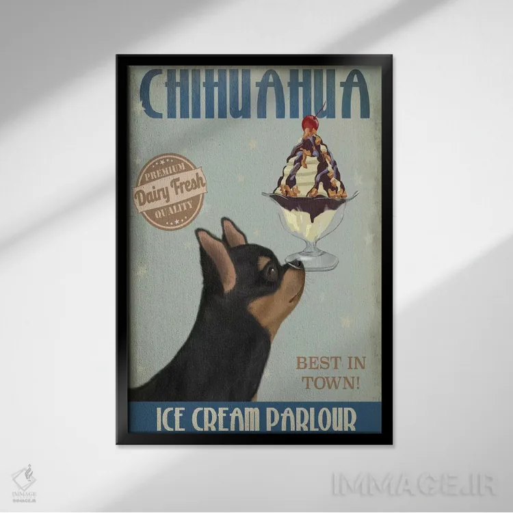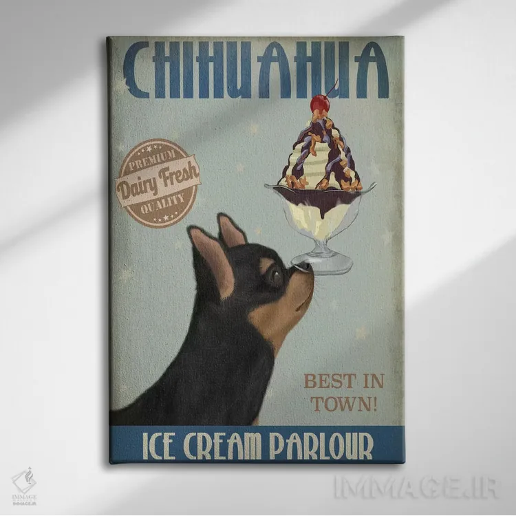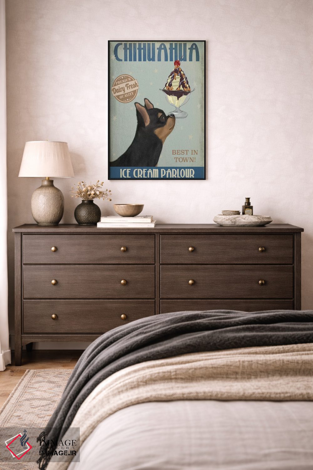 برای اتاقی که به یک عنصر دوستداشتنی نیاز دارد، «چیواوا سیاه و زنجفیلی، بستنی» اثرِ «فب فانکی (استودیو هنری)» گرما و شخصیت به فضا اضافه میکند؛ برای فضاهای روستیک یا بوهو انتخابی خوشسلیقه است. حسش صمیمی است، اما کیفیتش جدی و خوشپرداخت.