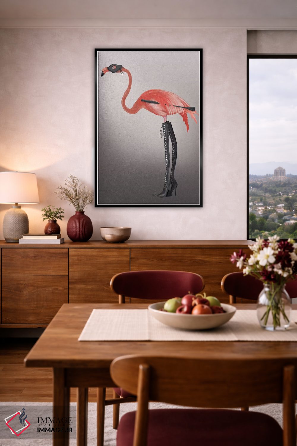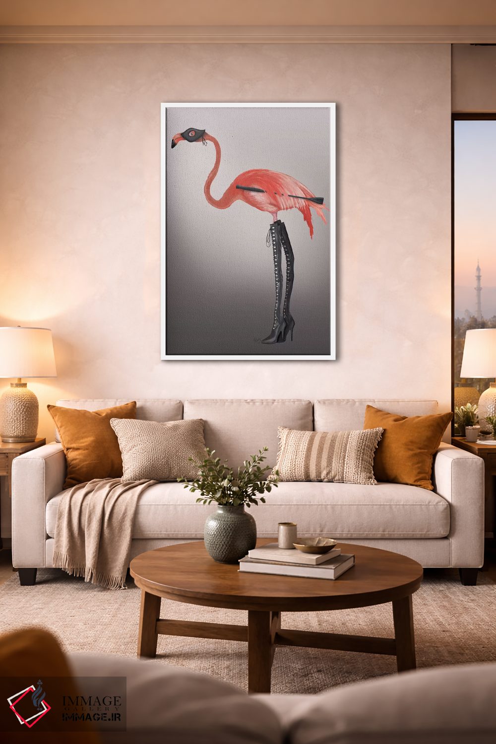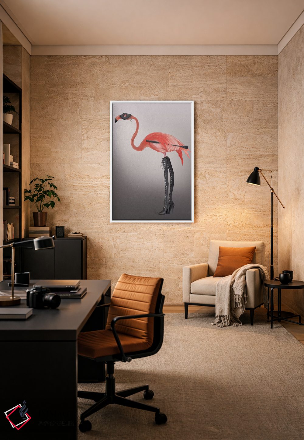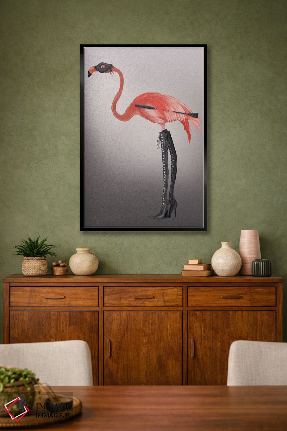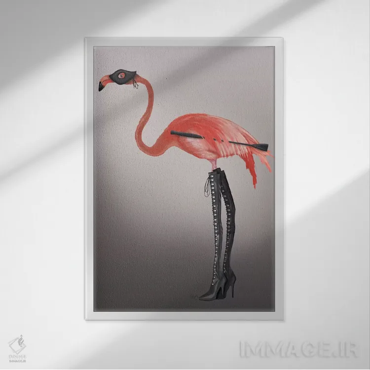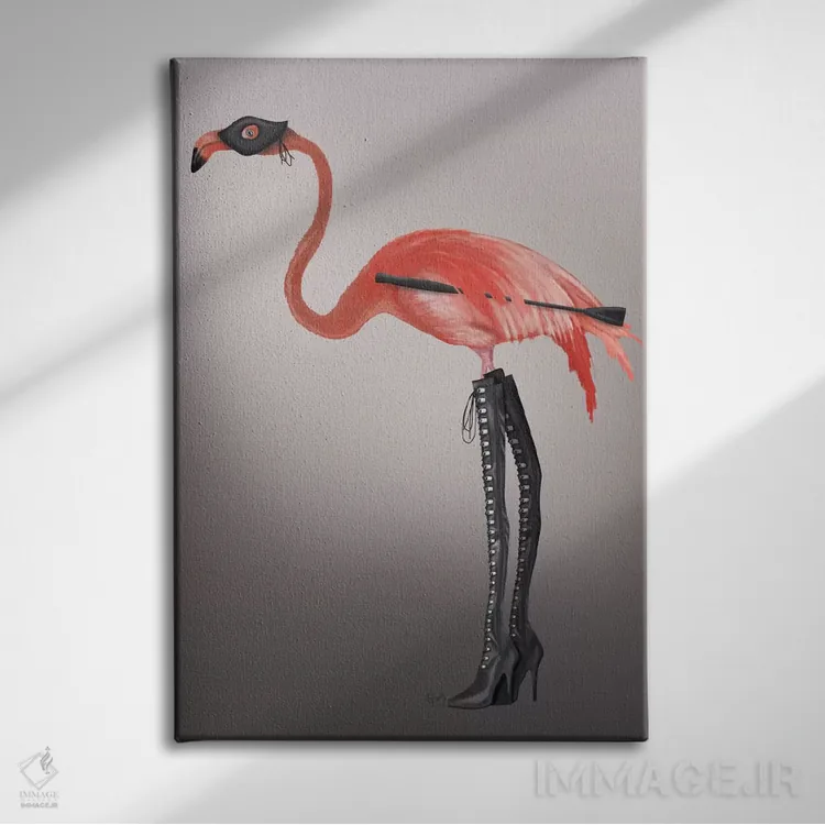 تابلو دکوراتیو فلامینگو با چکمه های خاص اثر فب فانکی