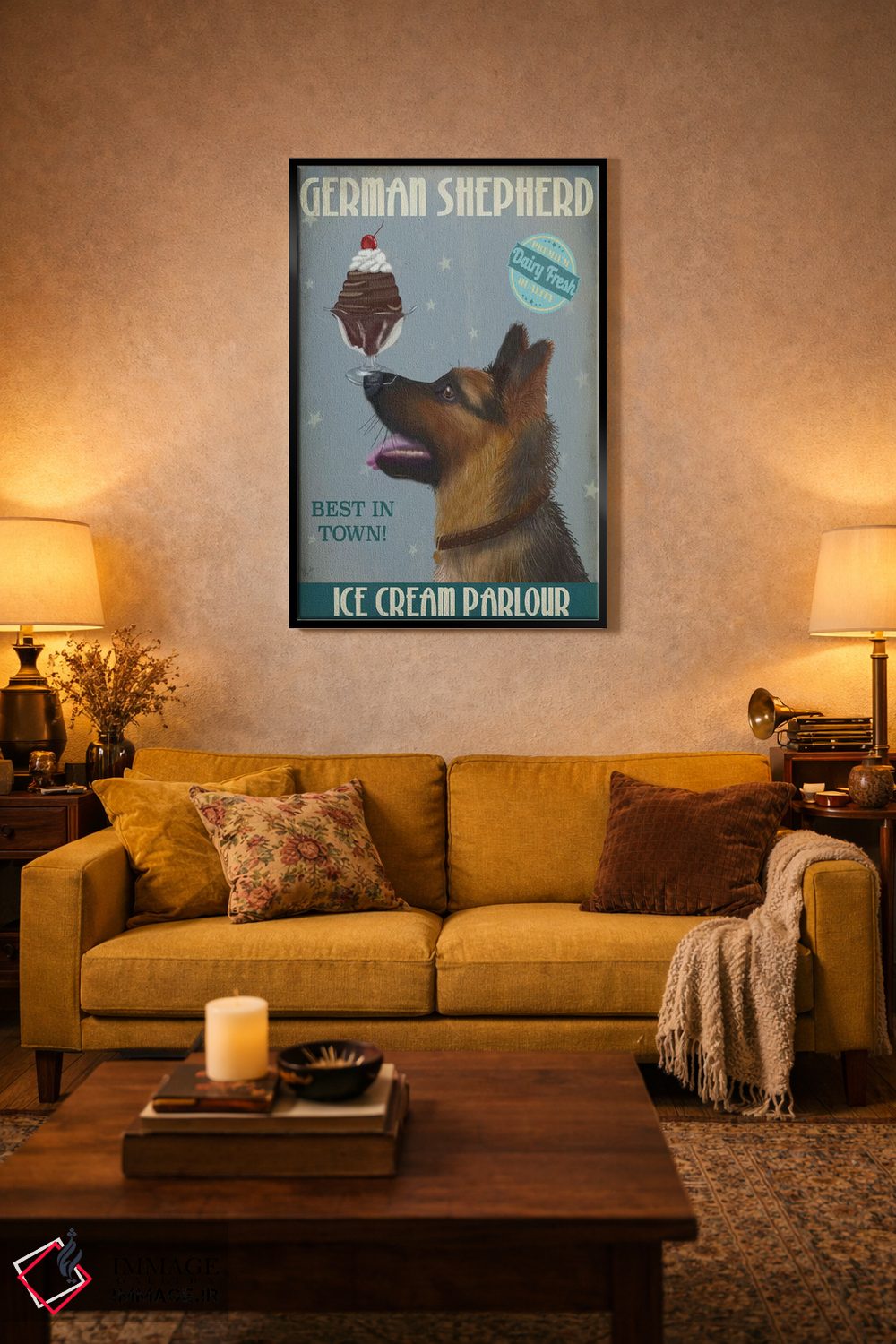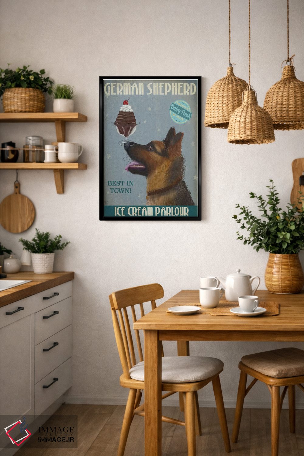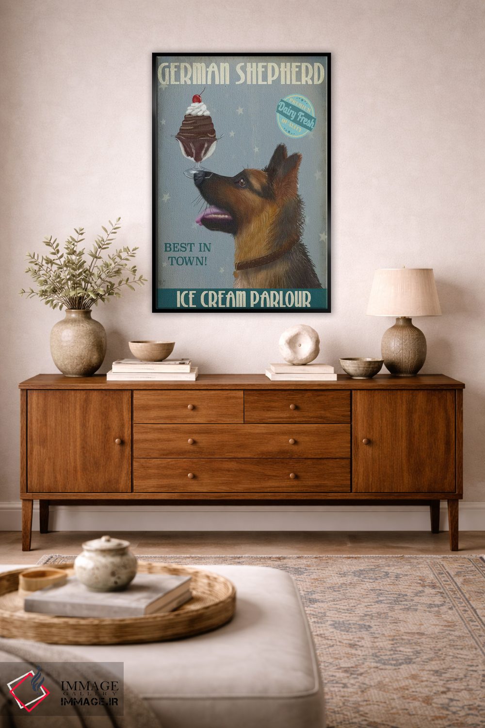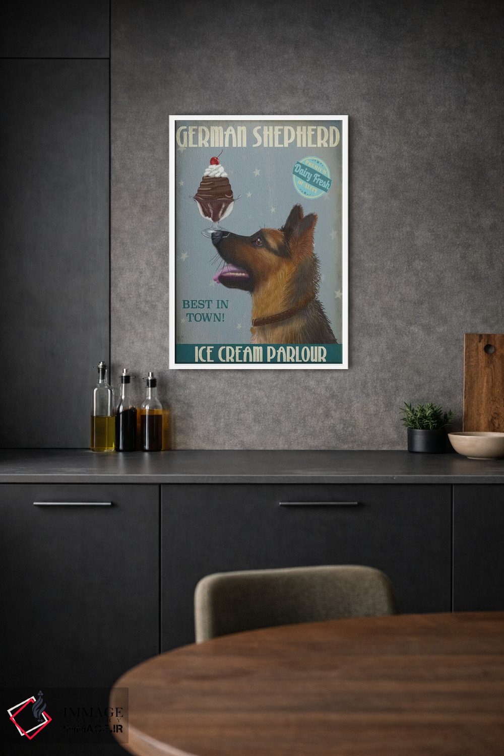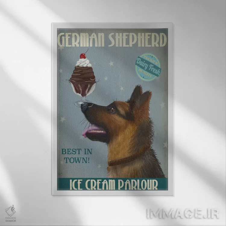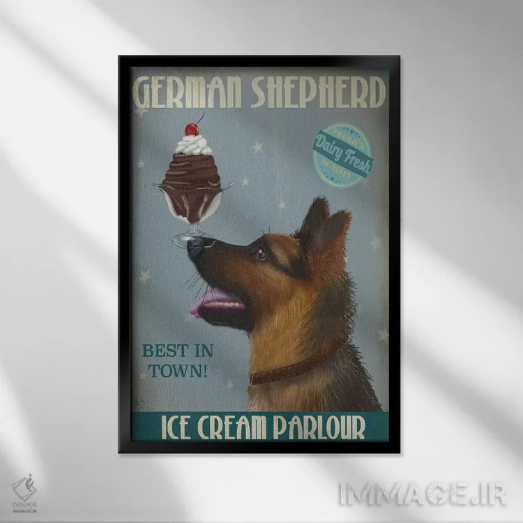 تابلو دکوراتیو ژرمن شپرد و بستنی اثر فب فانکی