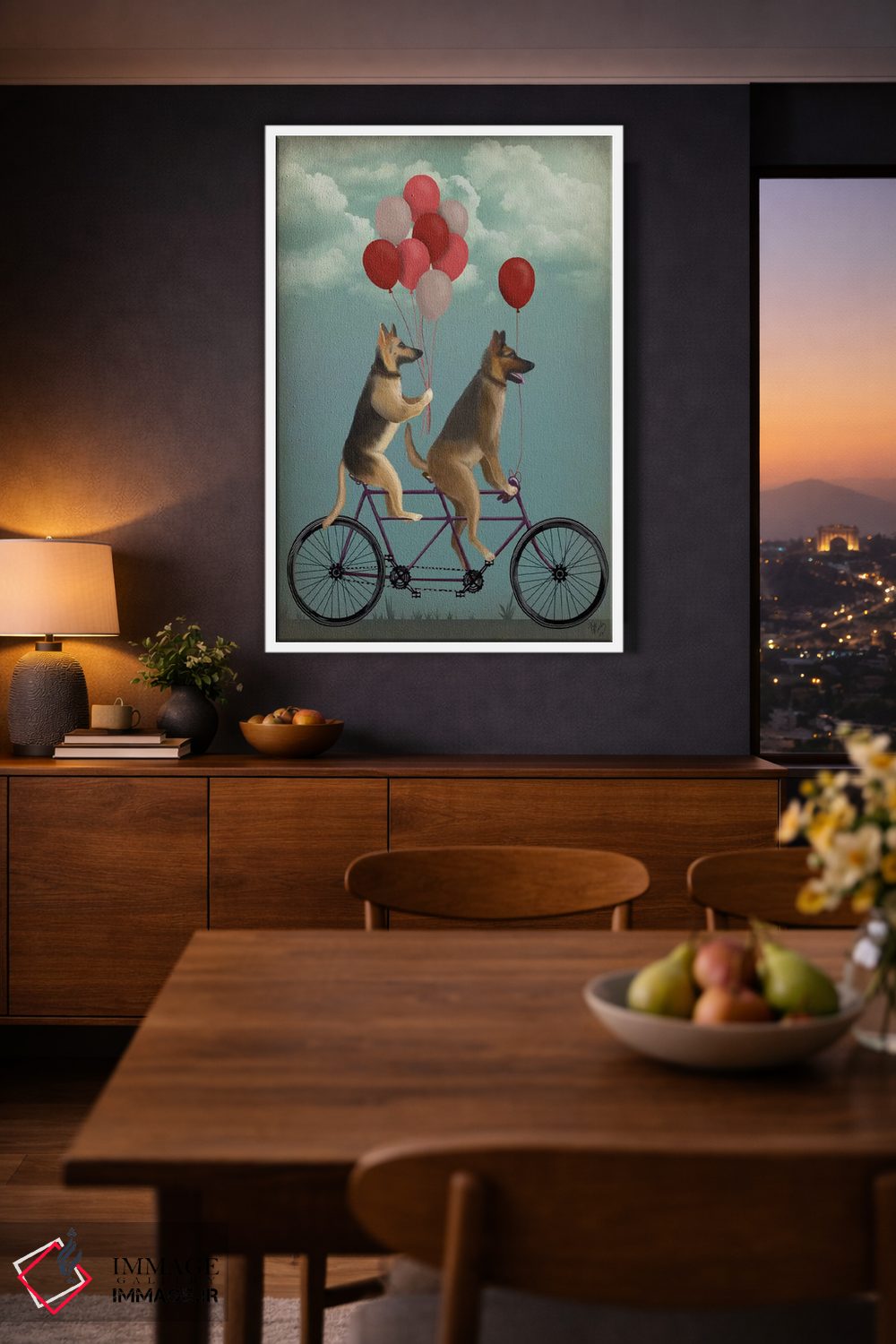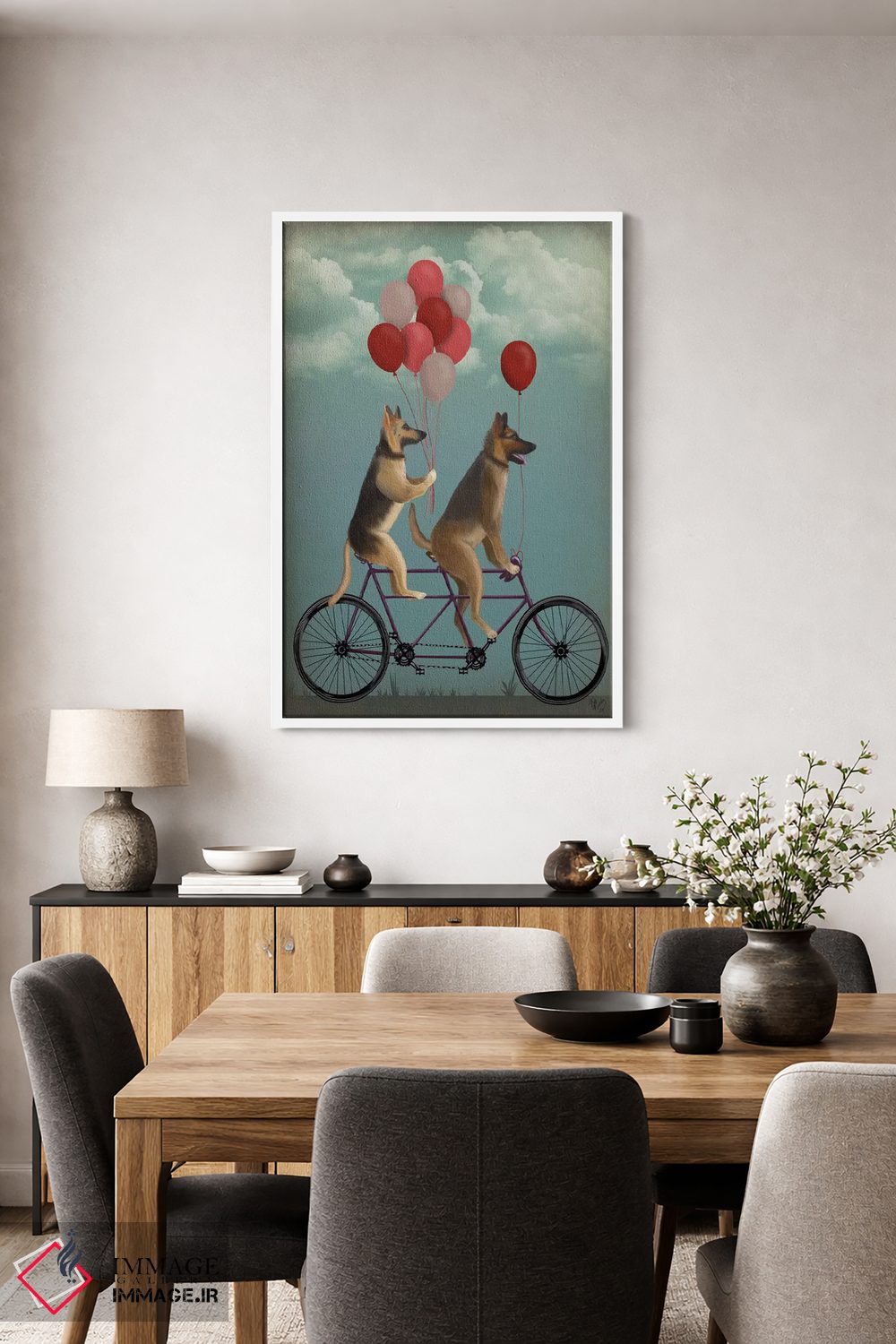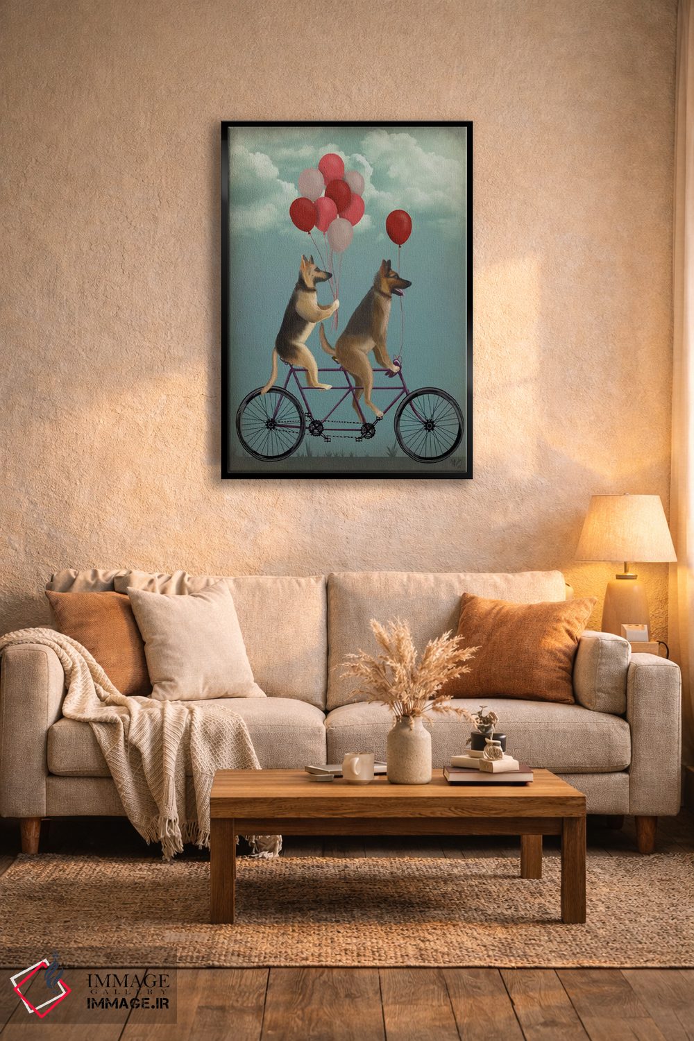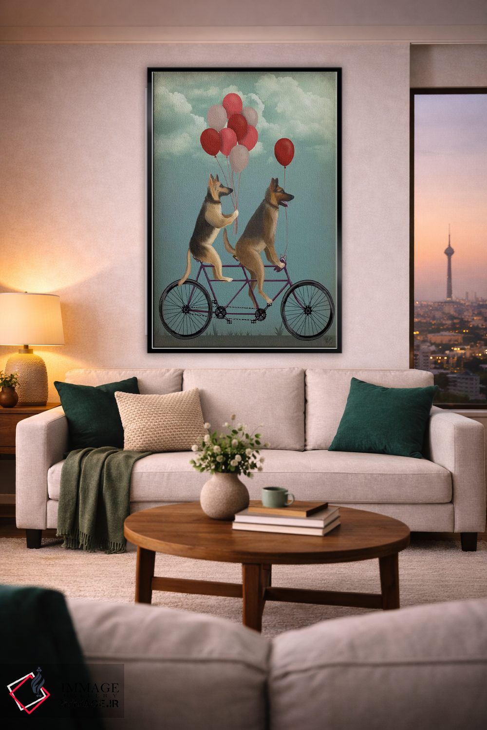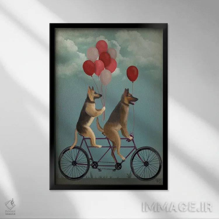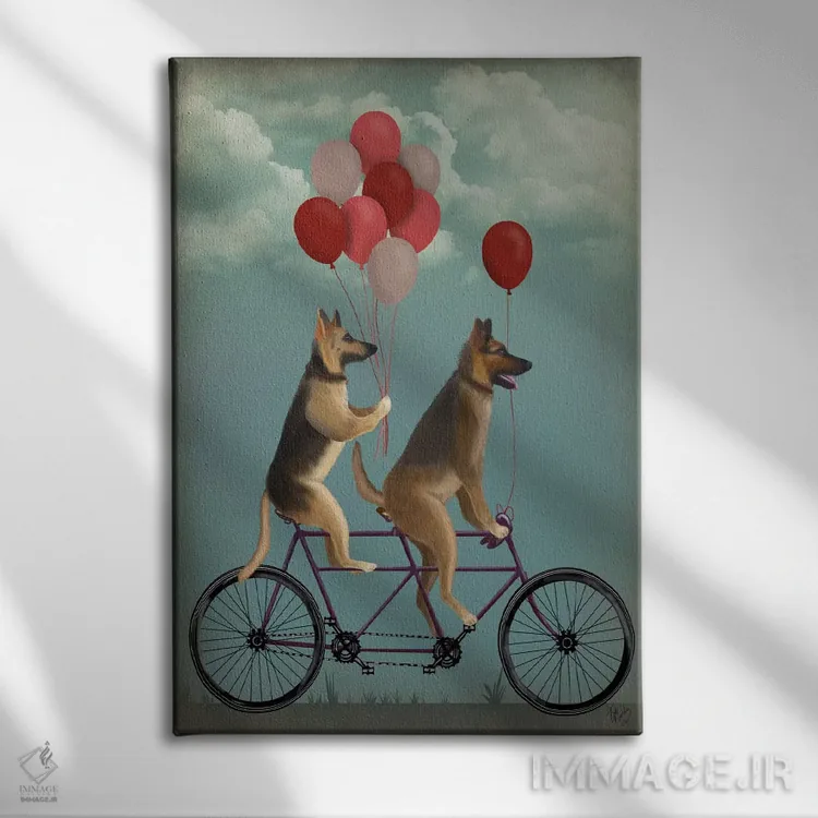 تابلو دکوراتیو ژرمن شپرد روی دوچرخه دونفره اثر فب فانکی