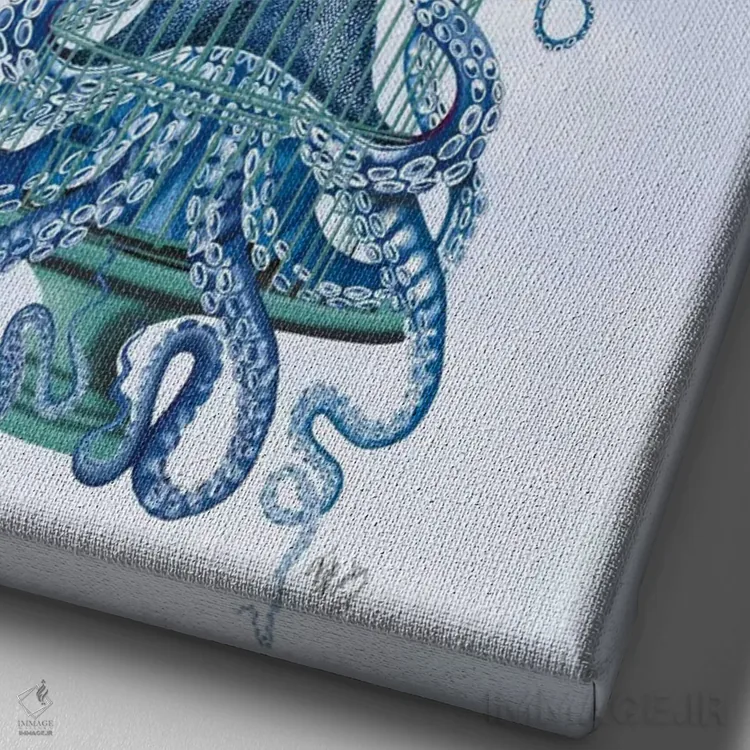 تابلو دکوراتیو قفس اختاپوس و بادکنک ها اثر فب فانکی - نمای نزدیک بافت بوم