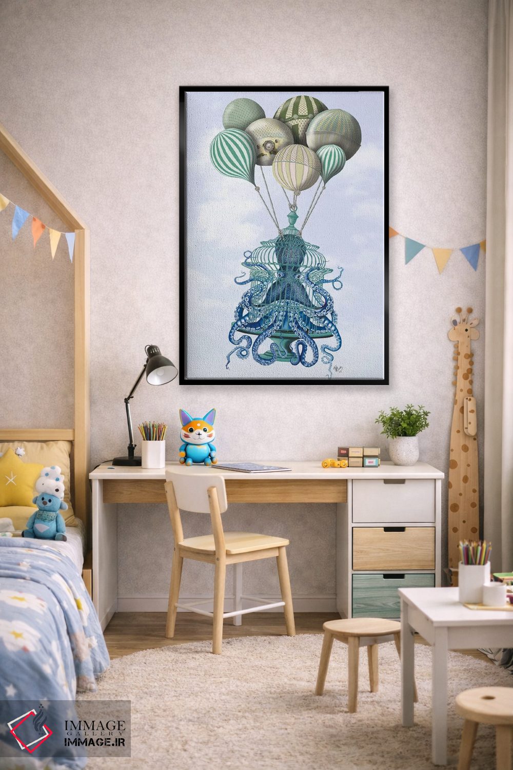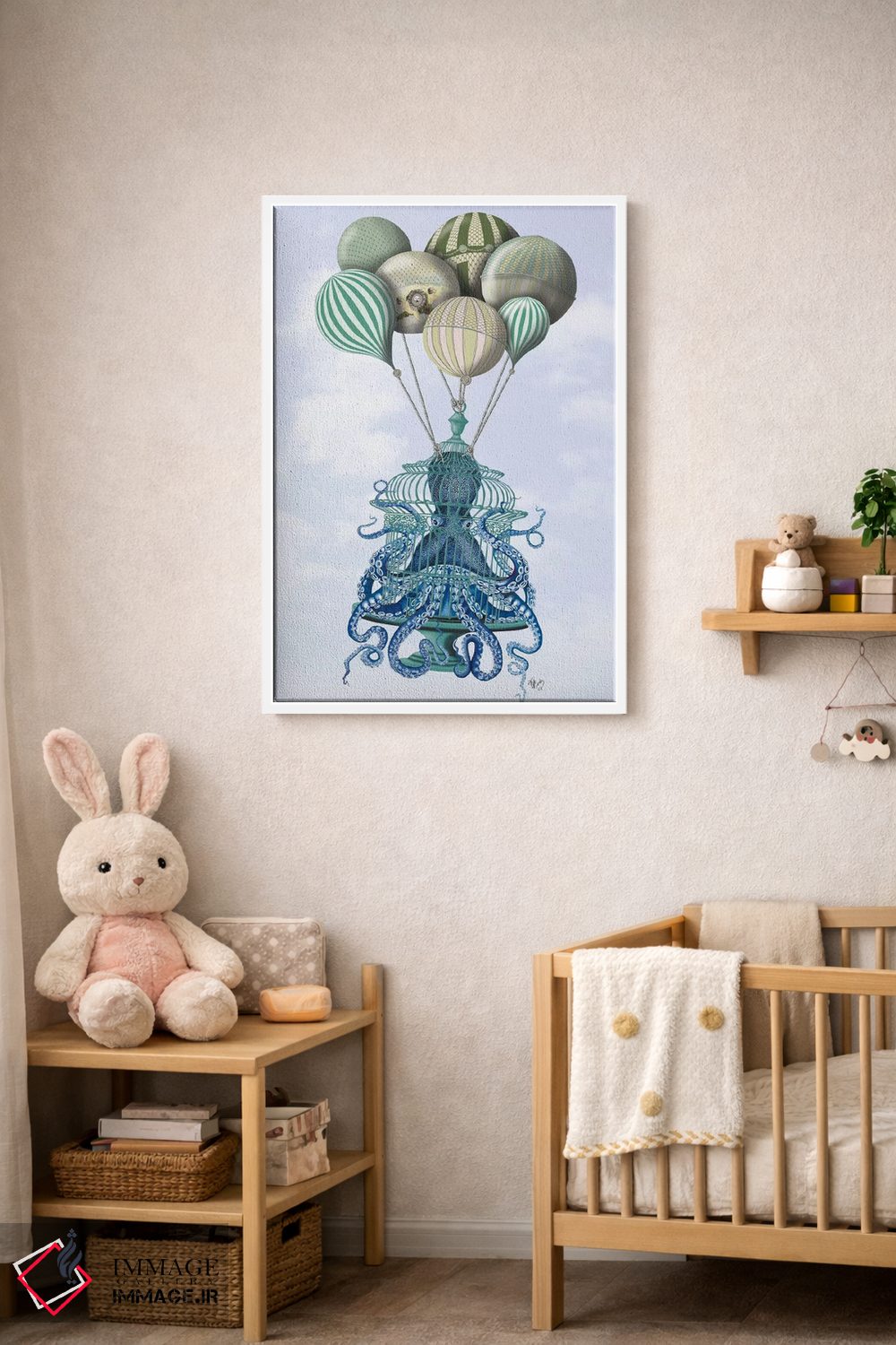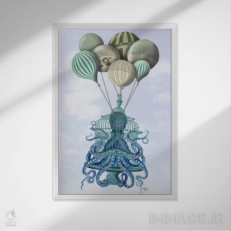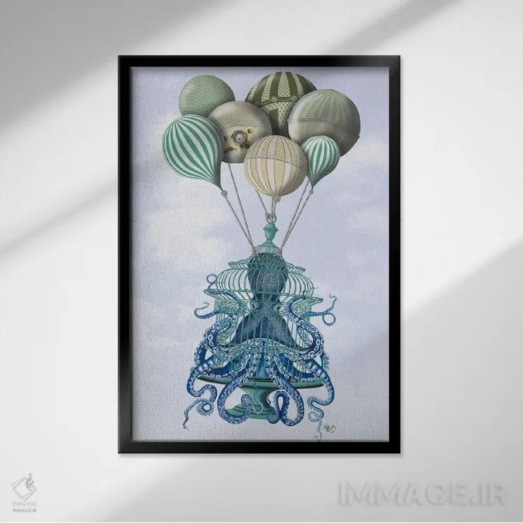 تابلو دکوراتیو قفس اختاپوس و بادکنک ها اثر فب فانکی - نمای پرسپکتیو محصول