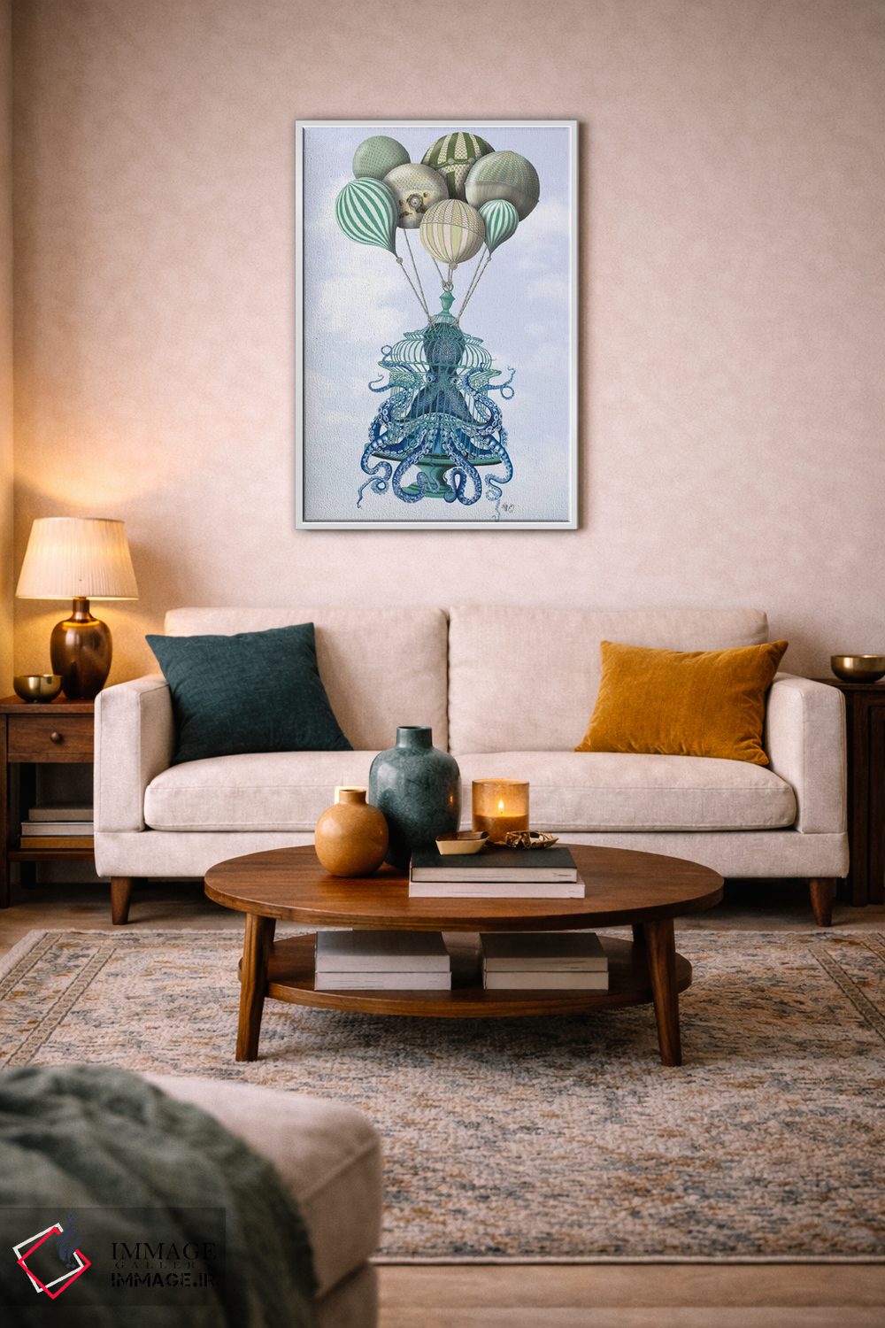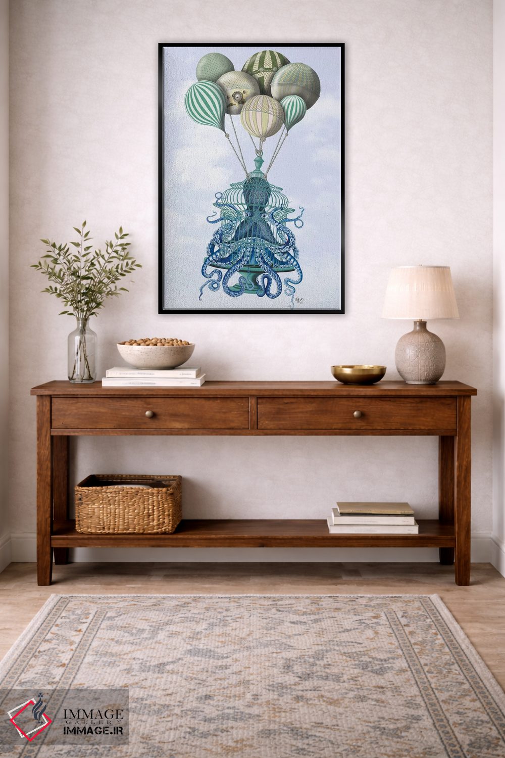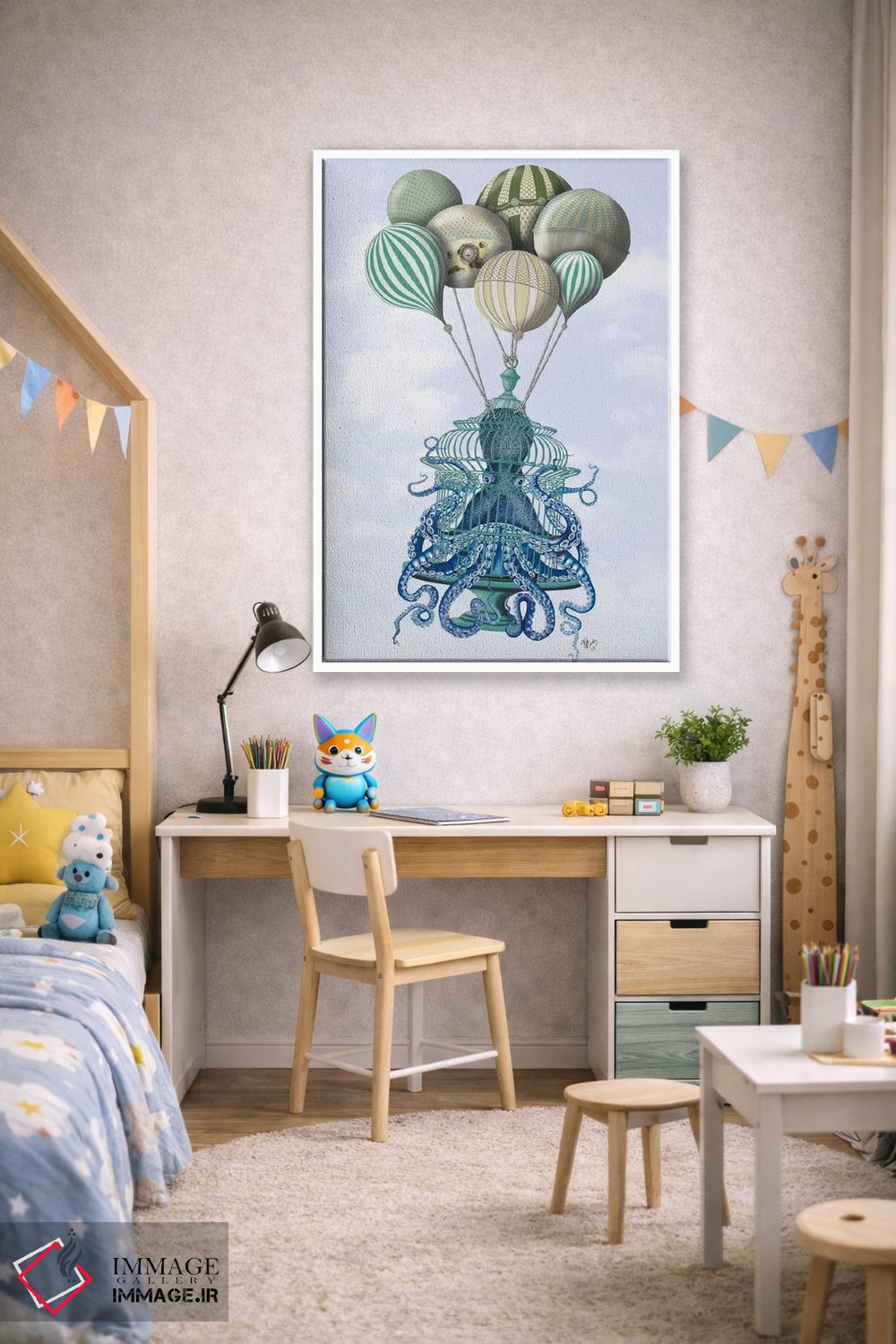 تابلو دکوراتیو قفس اختاپوس و بادکنک ها اثر فب فانکی - نمای پرسپکتیو محصول