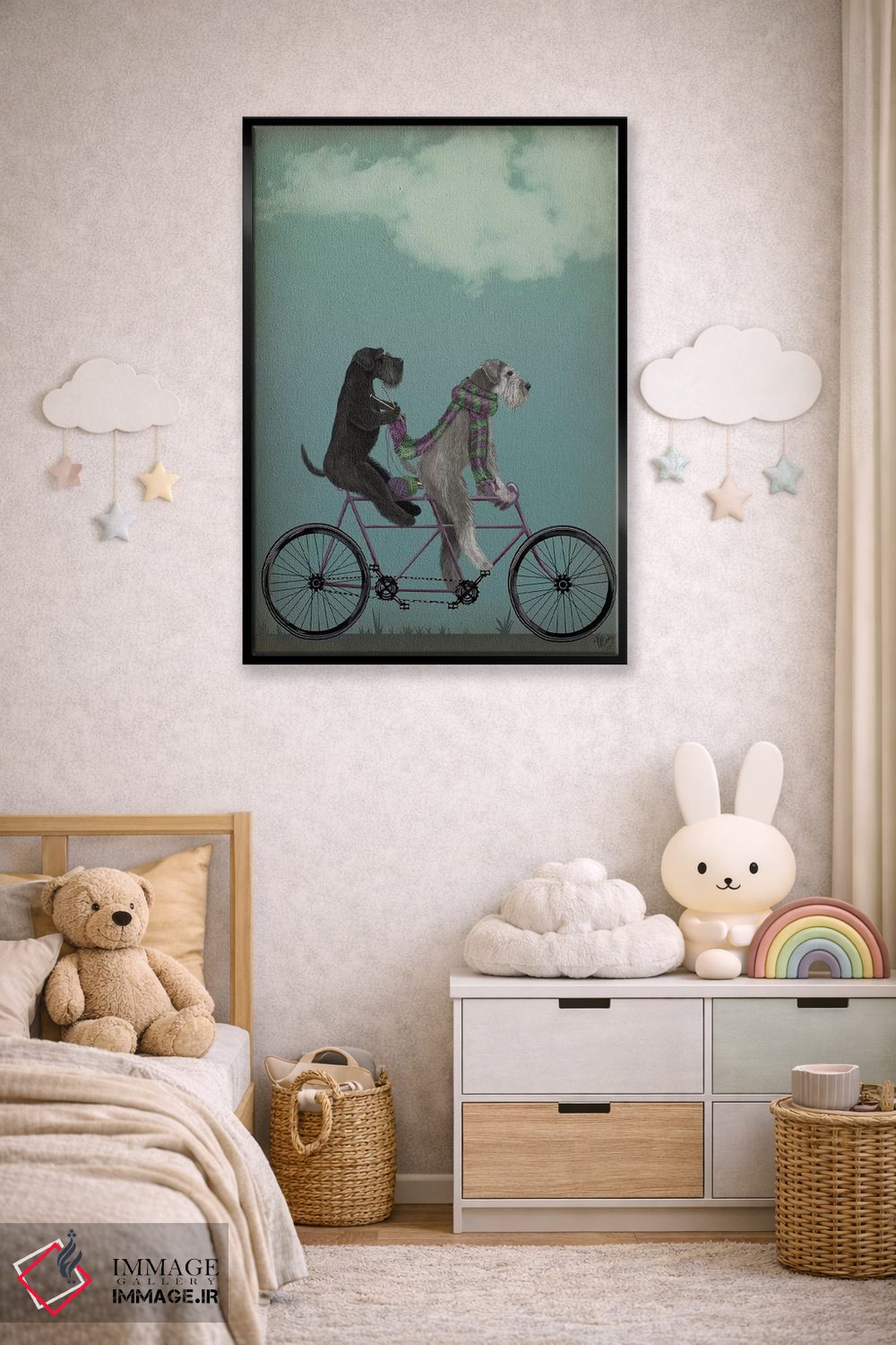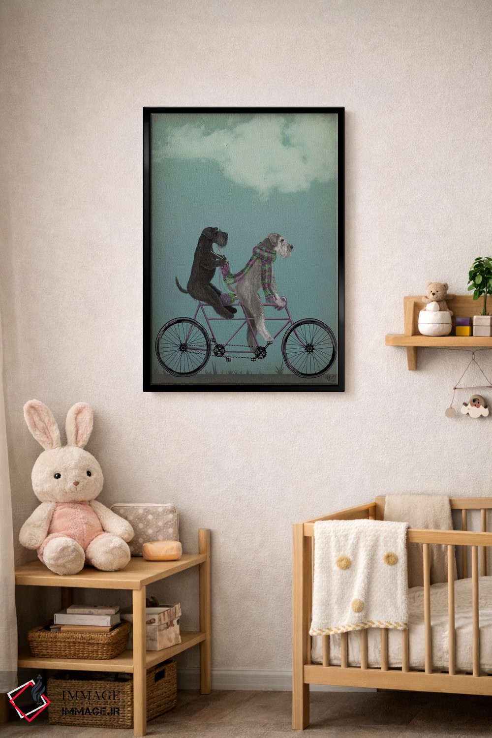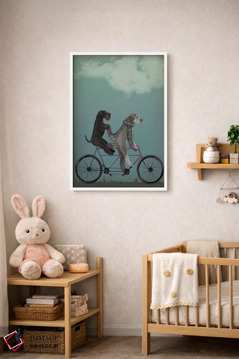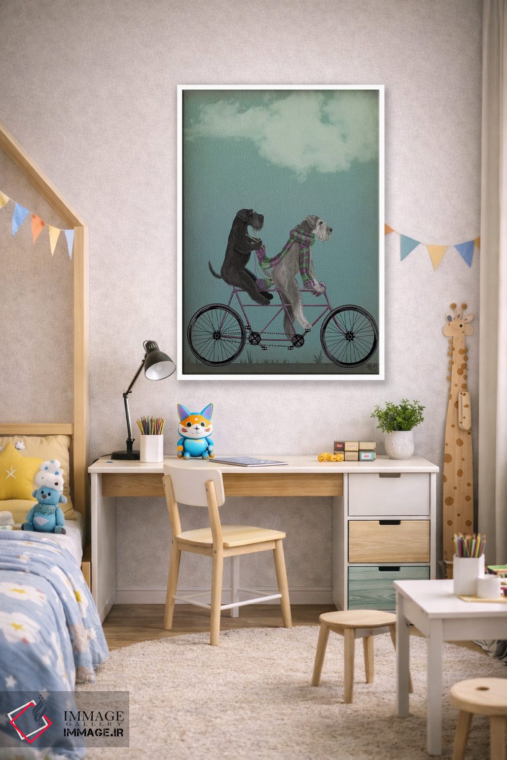 «اشناور روی دوچرخه دونفره» اثرِ «فب فانکی (استودیو هنری)» میتواند در کنار رنگهای خنثی، تضاد دلچسبی بسازد؛ برای فضاهای روستیک یا بوهو پیشنهاد میشود. با نورپردازی نقطهای، جذابتر هم میشود.