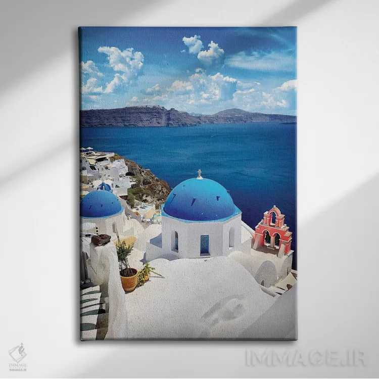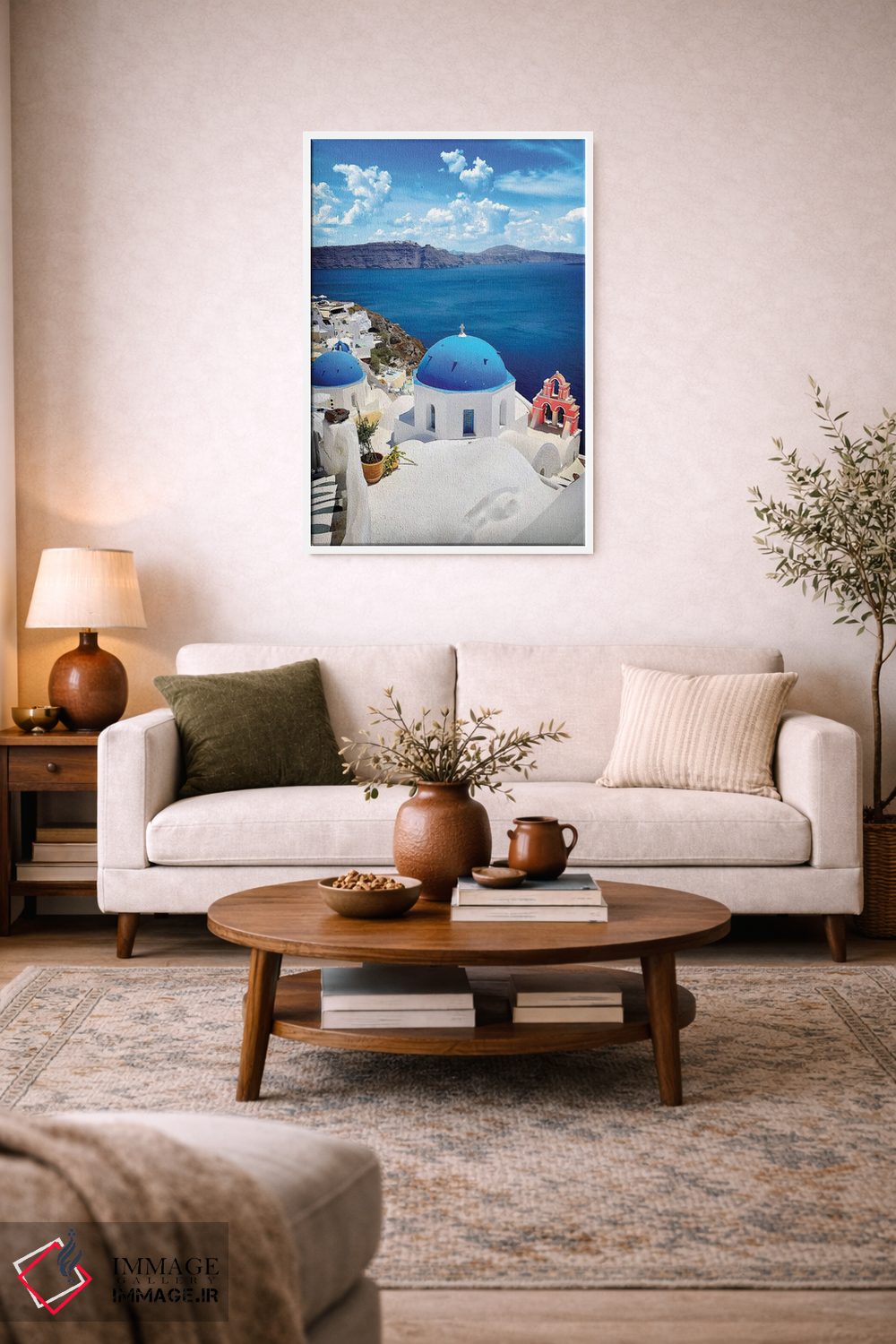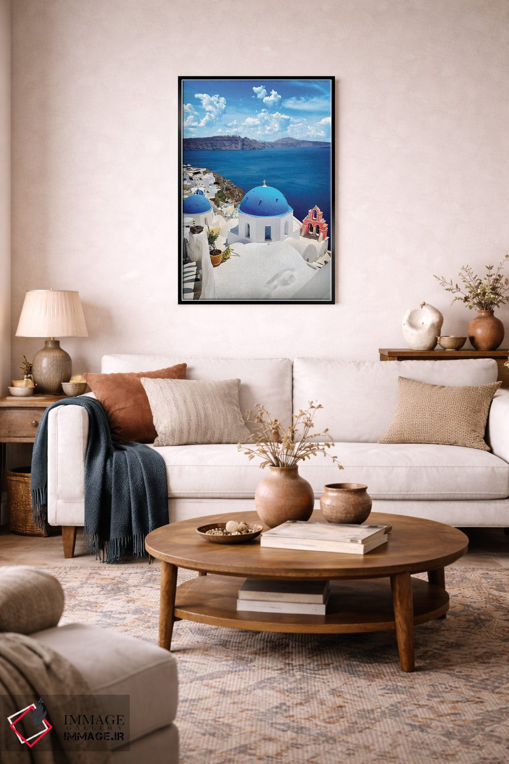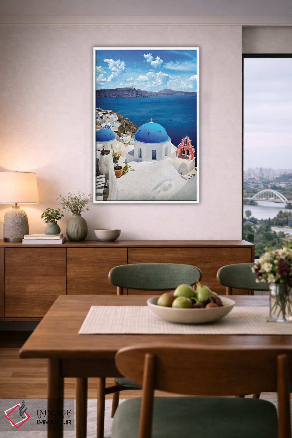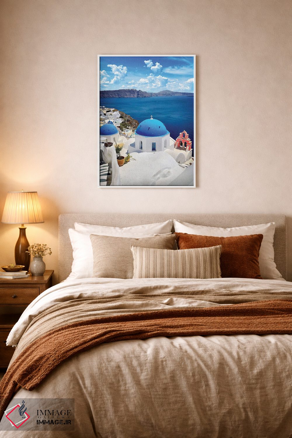 تابلو دکوراتیو سقفی به رنگ آسمان، اویا، سانتورینی، یونان اثر فلوریان اولبرشتس - نمای روبه‌رو روی دیوار