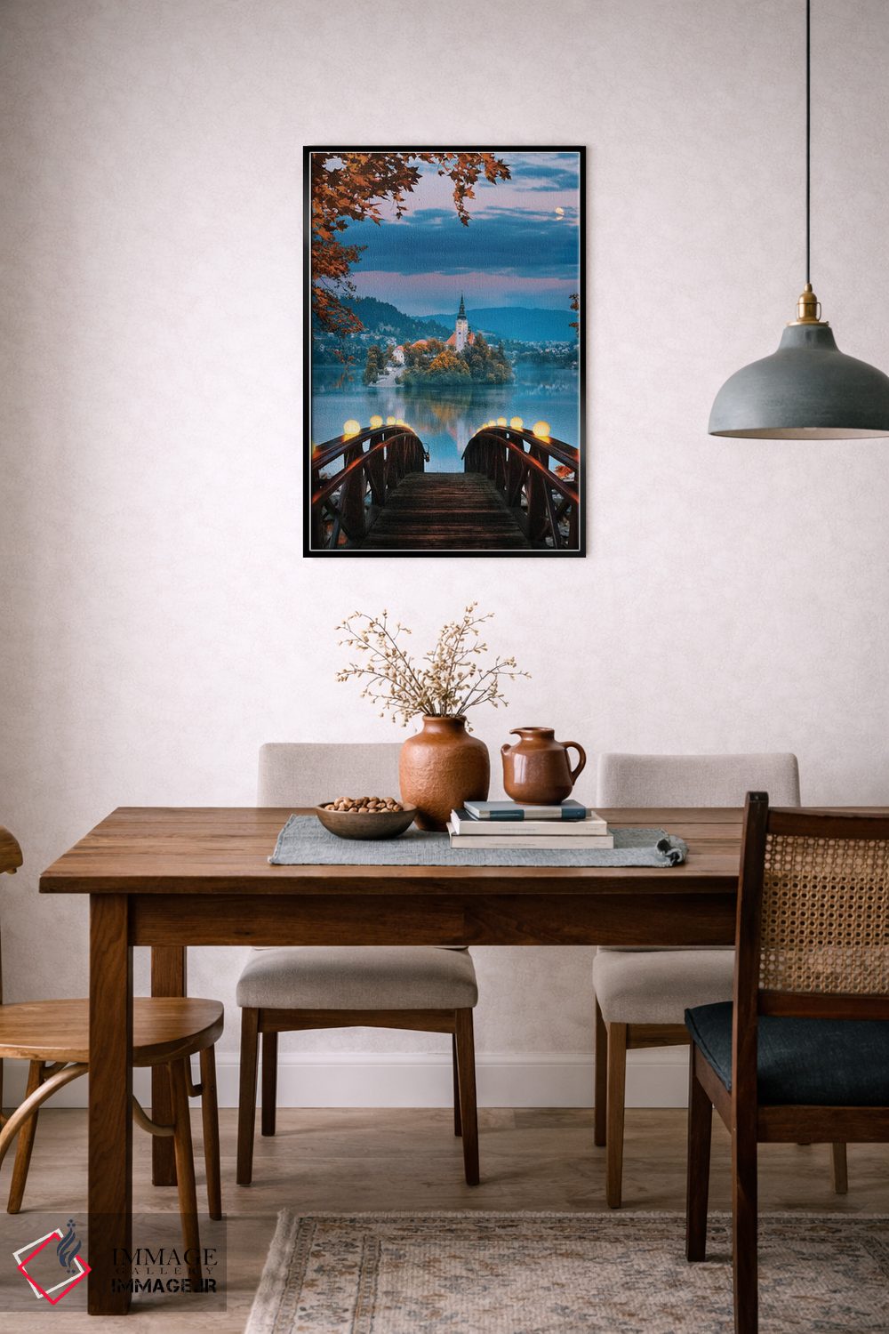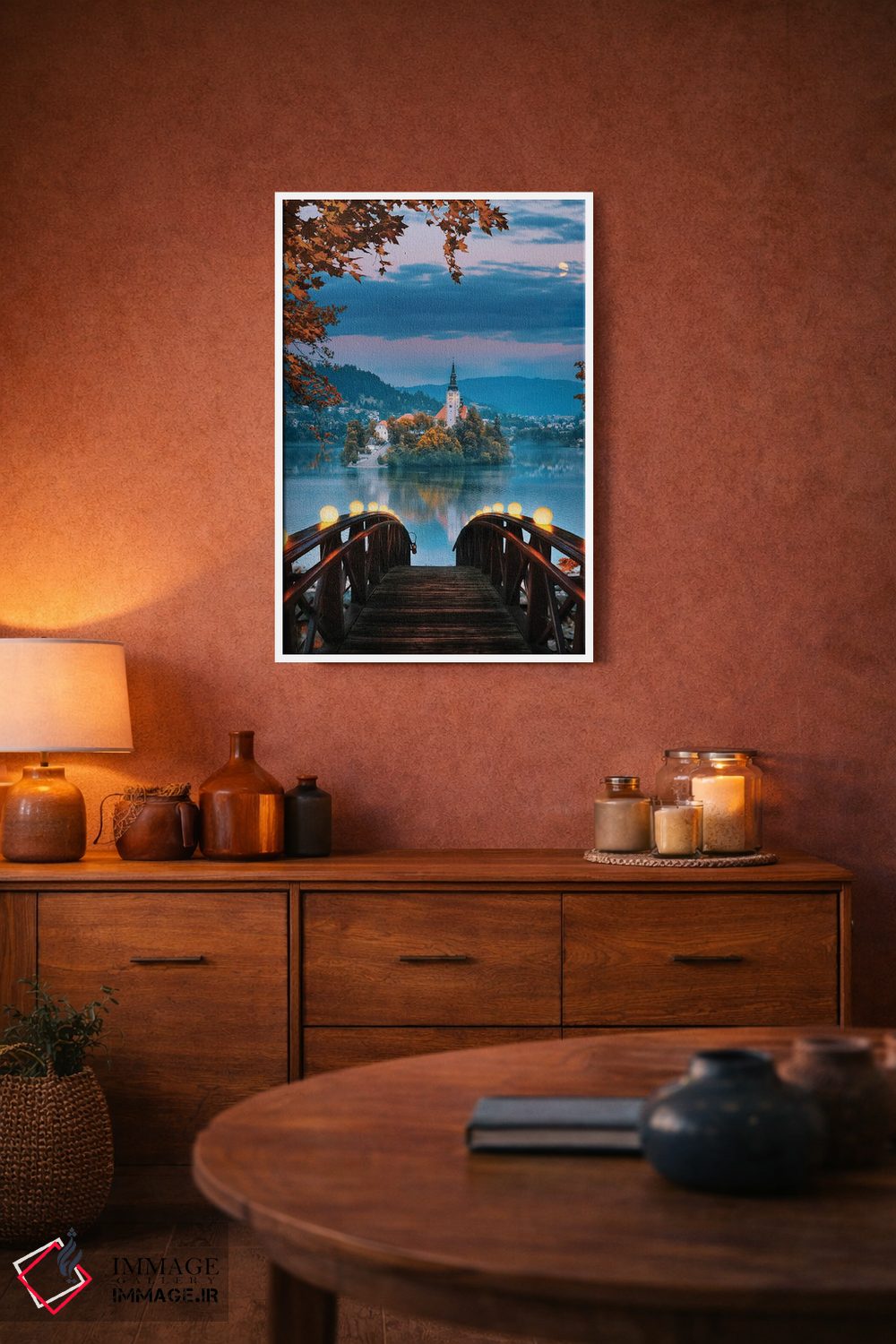 «دریاچه بلد، اسلوونی» اثرِ «فلوریان اولبرشتس» از آن کارهاییست که در دکورهای جدیتر (نشیمن رسمی یا دفتر کار) عالی مینشیند.