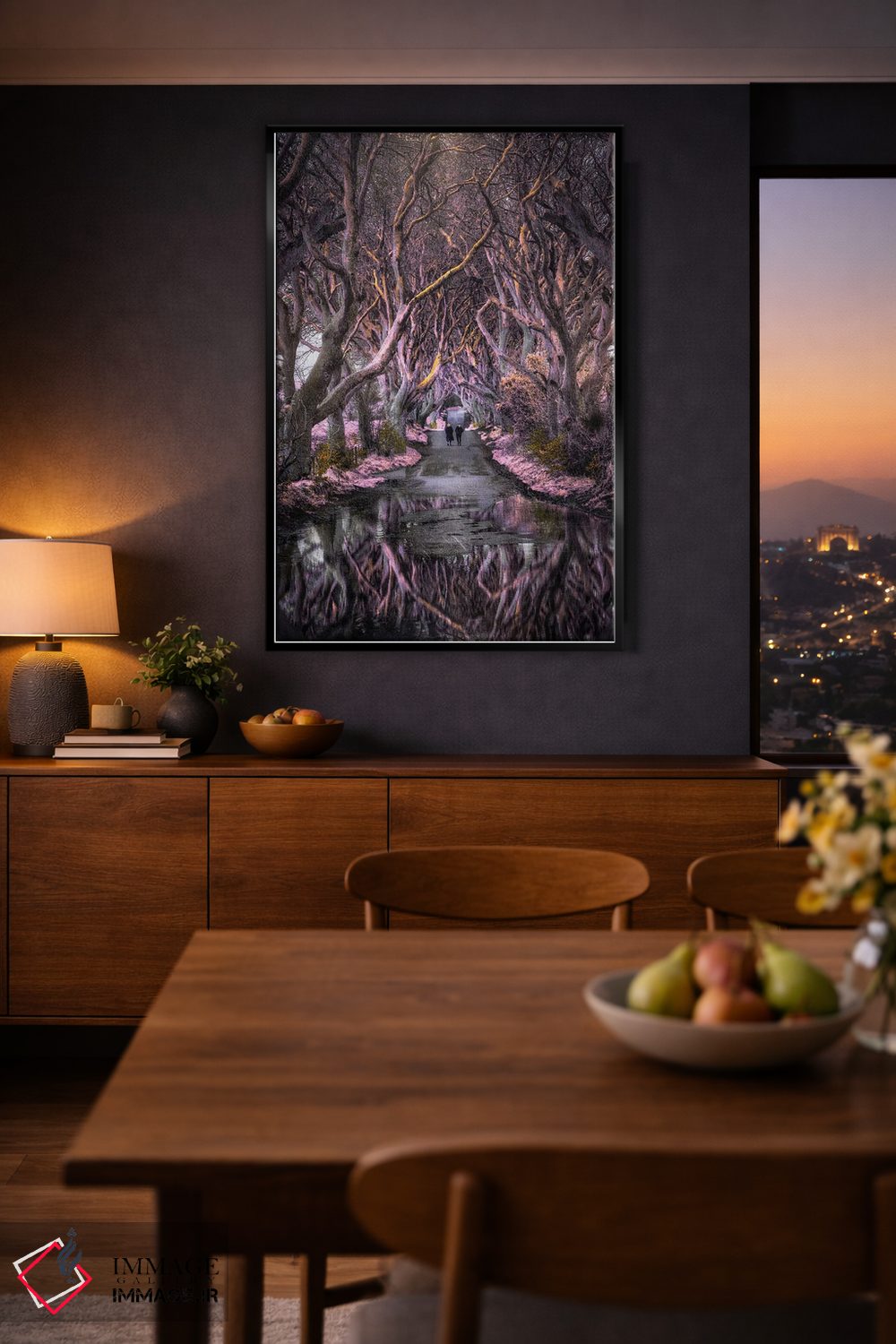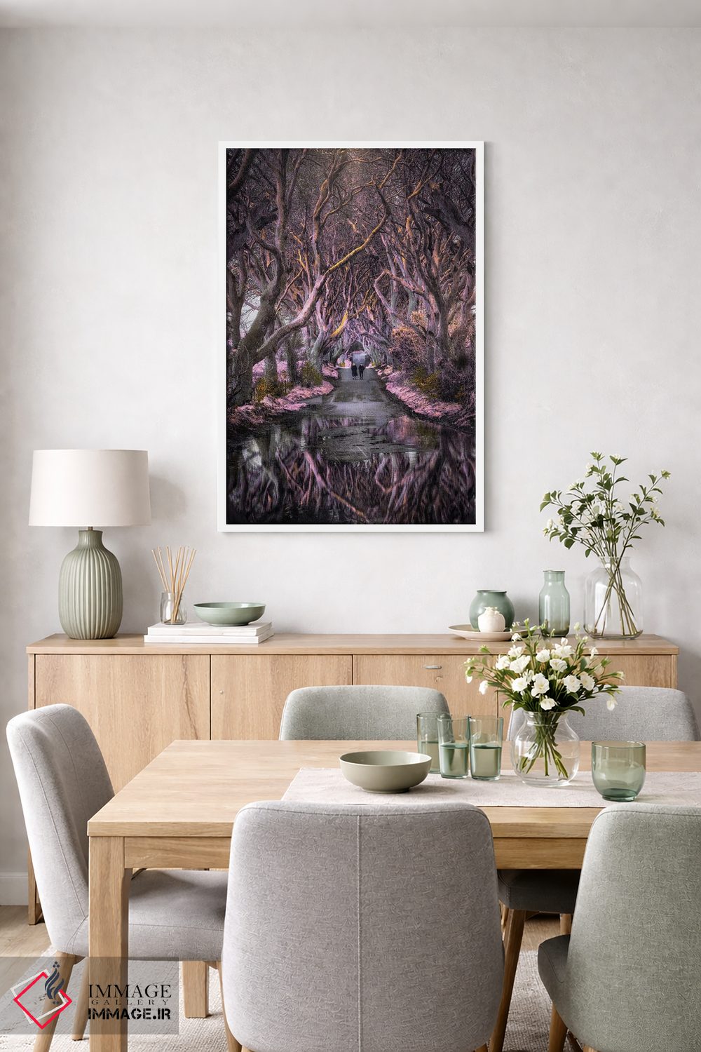 بوم گالری ایماژ طوری طراحی شده که اثر روی دیوار «پرداختشده» و حرفهای دیده شود—نه پرزرقوبرقِ بیپایه؛ بلکه دقیق و خوشپرداخت. بافت ظریف کنواس کمک میکند حس اثر هنری را در نگاه نزدیک نگه میدارد و برای فضاهای رسمیتر هم انتخاب مطمئنی است. رنگهای آرشیوی Epson UltraChrome HDR کمک میکند نیمسایهها را لطیفتر نگه میدارند بهخصوص وقتی نور موضعی ملایم داشته باشید. حاصل کار، یک تابلو خوشنشین است که هم از دور اثرگذار است و هم از نزدیک خوشخوان؛ برای هدیهی هنری هم انتخاب محترمانهای است.