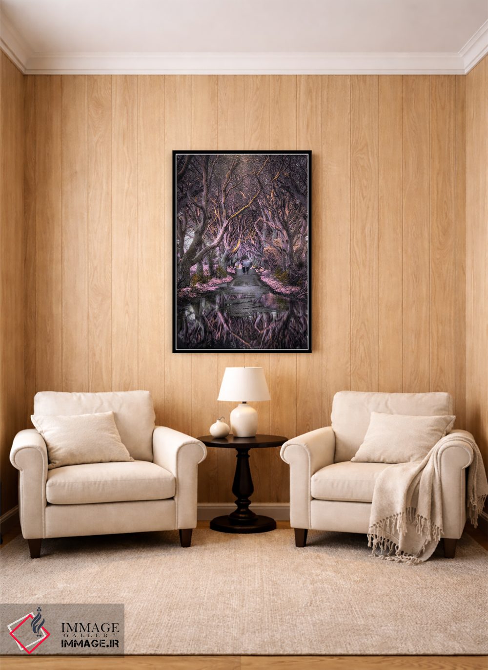 براساس پالت گرم اثر، قاب تیک گرم (چوبی) پیشنهاد اول است و مشکی مات (فریم متوسط) مکمل. برای سفارشهای پروژهای با ابعاد و قابهای اختصاصی با ایماژ در تماس باشید.