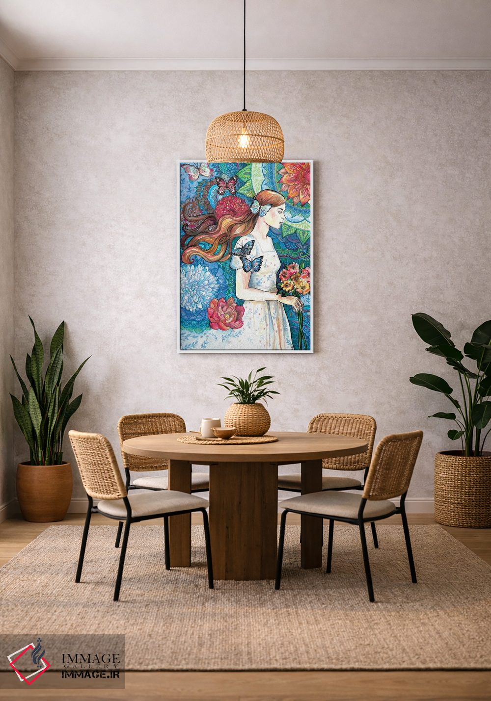 برای دیواری که میخواهید سلیقهتان را آرام و دقیق نشان بدهد، «گلها و پروانهها» اثرِ «فانیتسا پترو» یک «نقطهٔ مکث» خوشسلیقه میسازد؛ برای دکورهایی که بافت و جزئیات در آن مهم است پیشنهاد میشود. در کنار گیاهان آپارتمانی هم جلوهٔ لطیفی پیدا میکند.