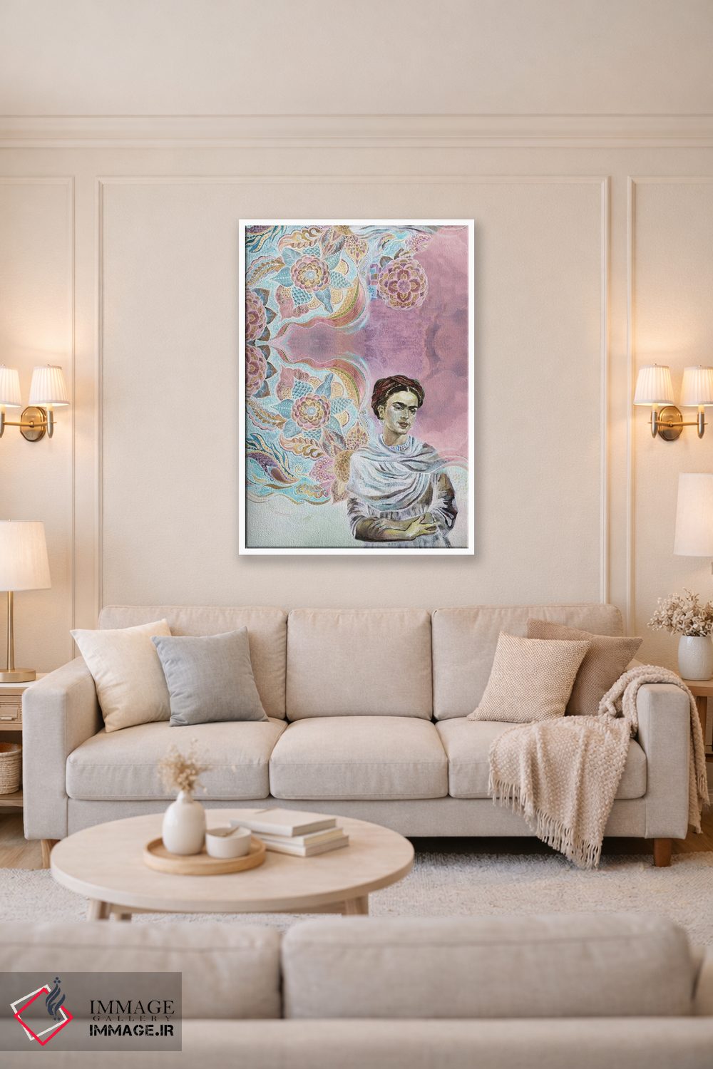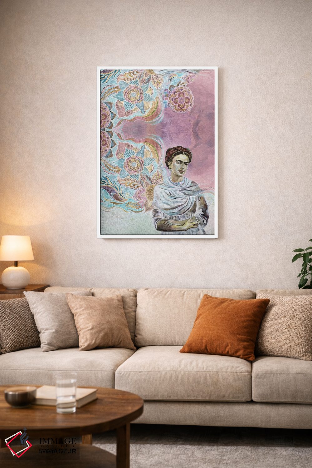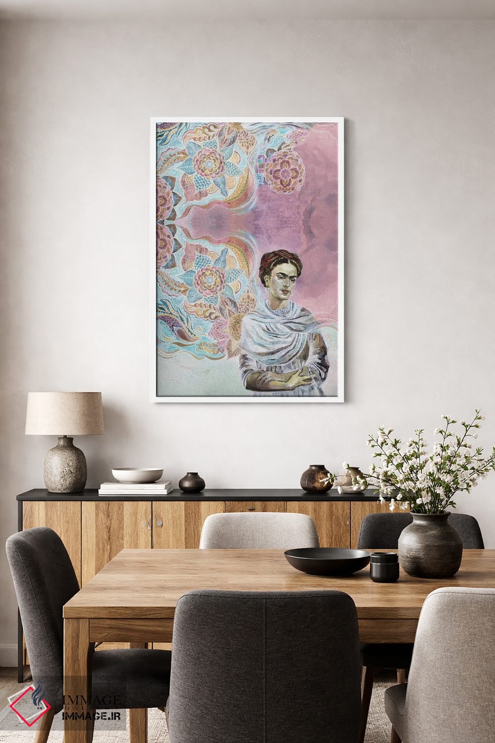 تابلو دکوراتیو فریدا روی پس زمینه صورتی اثر فانیتسا پترو
