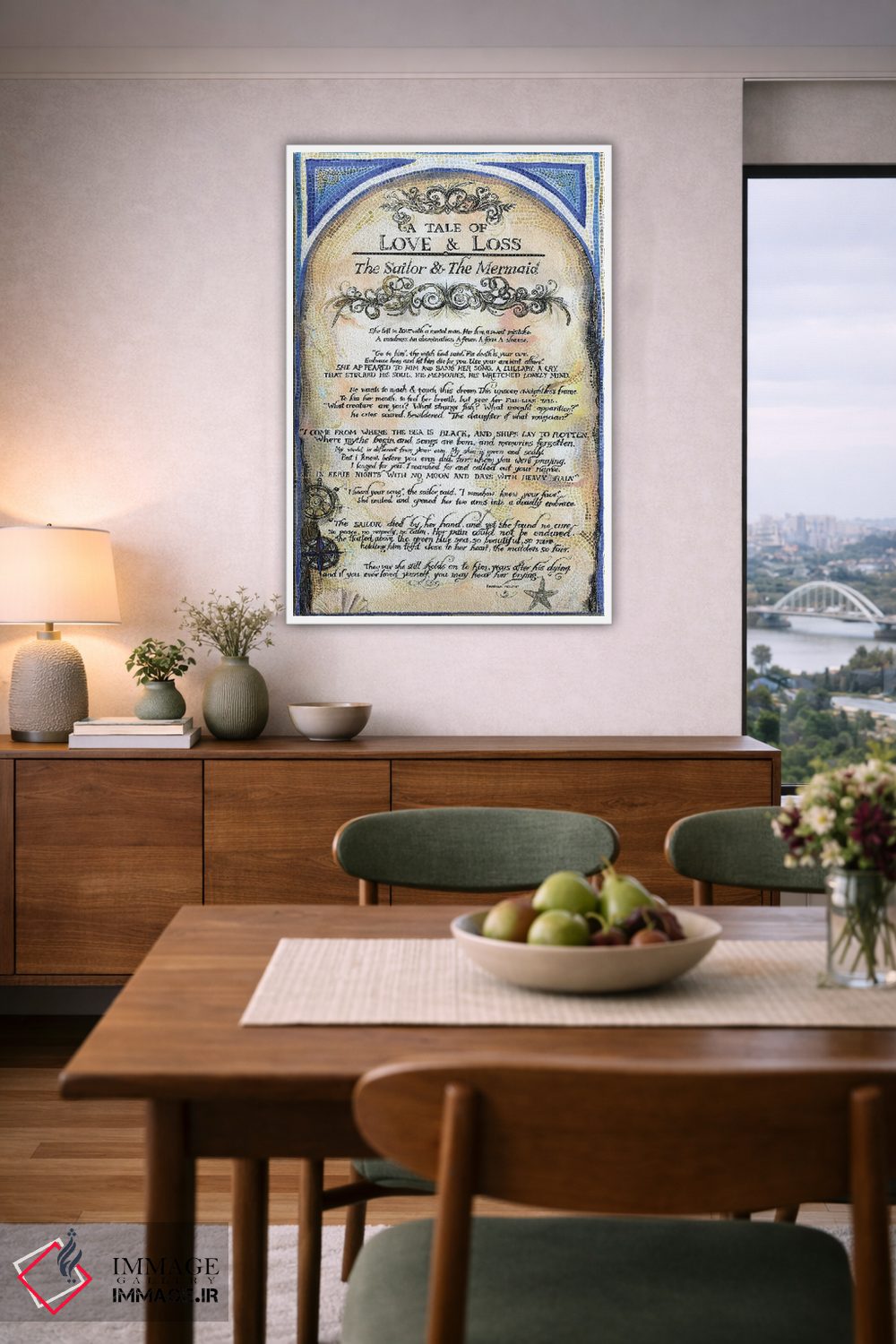 «داستان ملوان و پری دریایی ۲» اثرِ «فانیتسا پترو» با حالوهوای تزئینیِ این اثر، فضا را روشن و مرتب میکند؛ مناسب نشیمنهای روشن و چیدمانهای مدرن.
