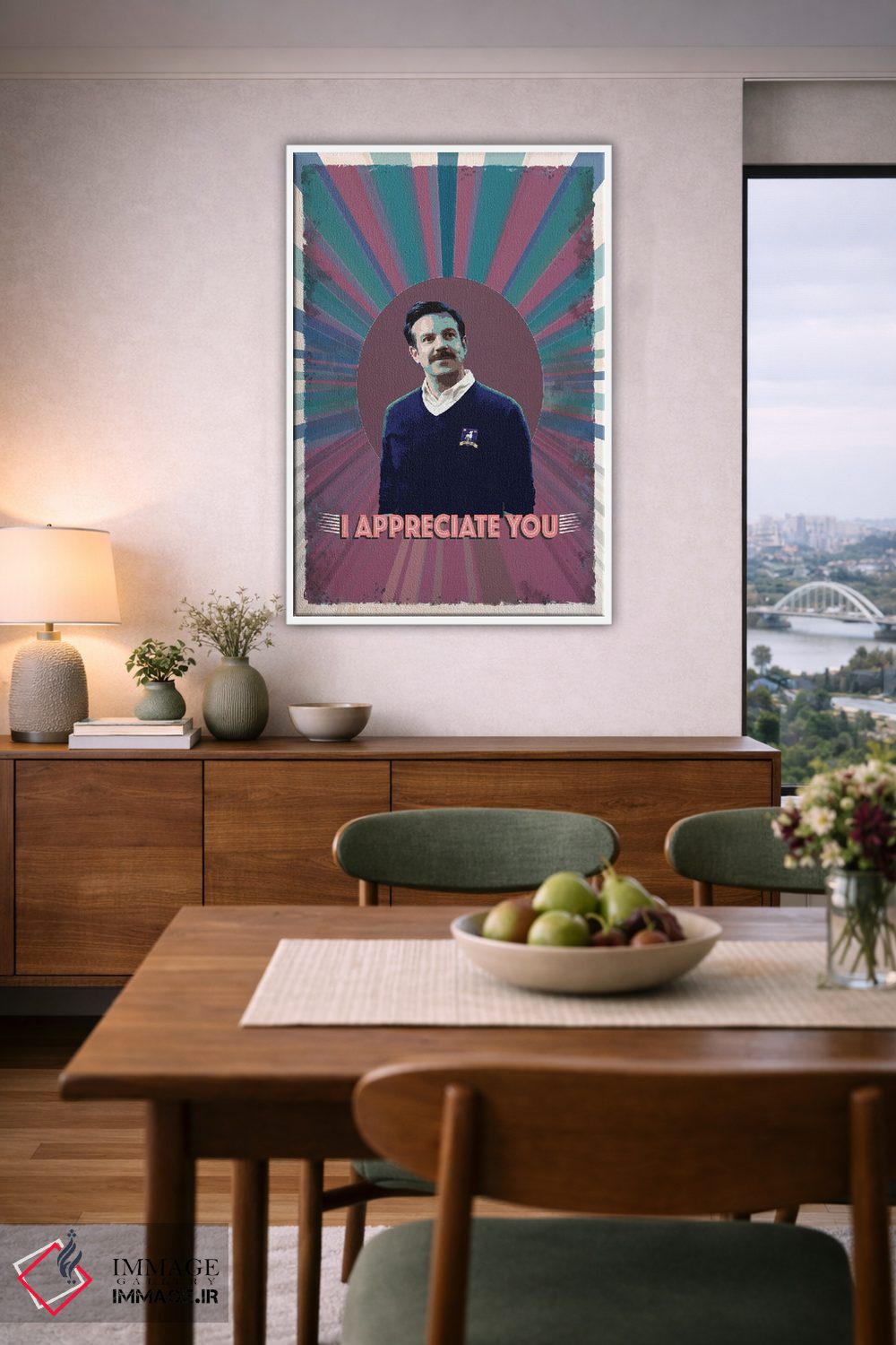 براساس پالت ترکیبی اثر، قاب تیک گرم (چوبی) پیشنهاد اول است و مشکی مات (فریم متوسط) مکمل.