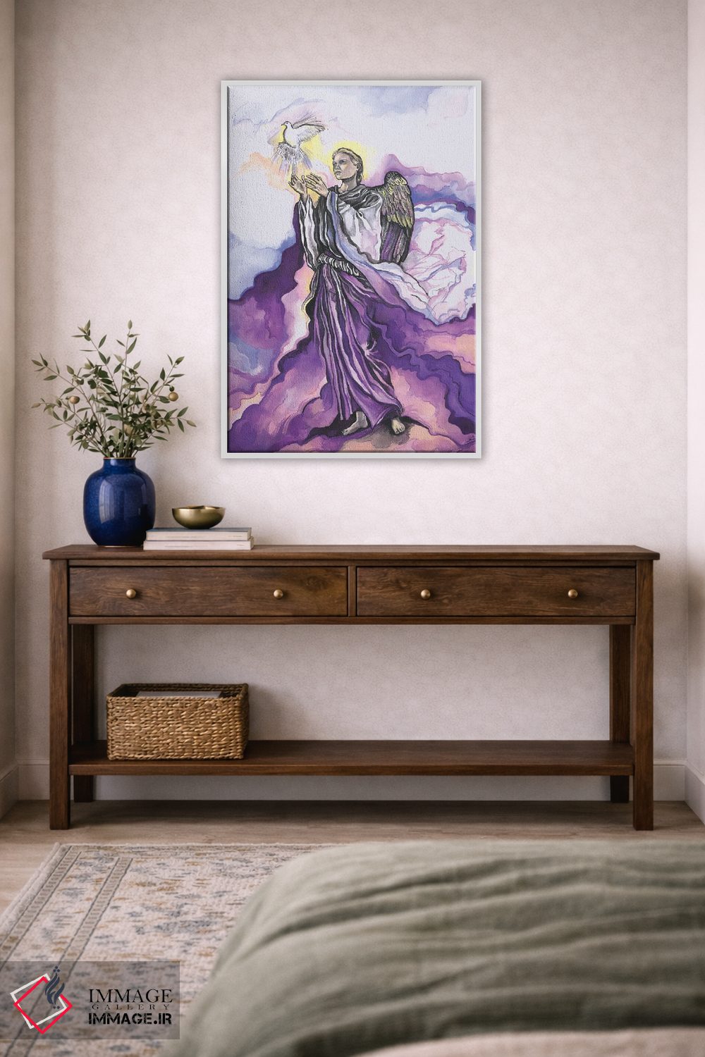 برای دکورهای صمیمی، «هفت فرشتهٔ مقرب» اثرِ «فانیتسا پترو» به دیوار، انرژیِ نرم و زنده میدهد؛ برای فضاهای روستیک یا بوهو انتخابی خوشسلیقه است. برای دیوار گالریوار هم گزینهٔ خوبیست.