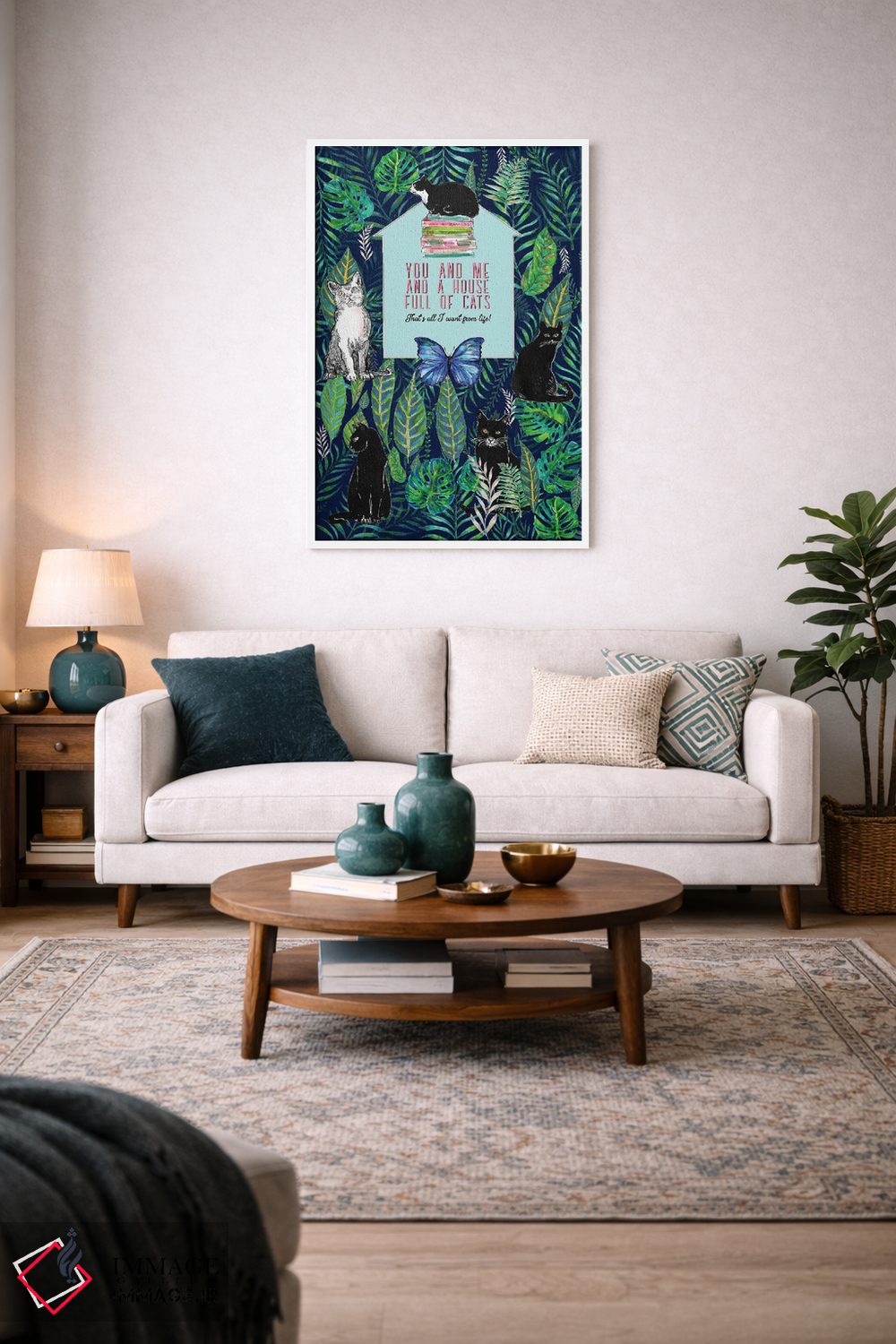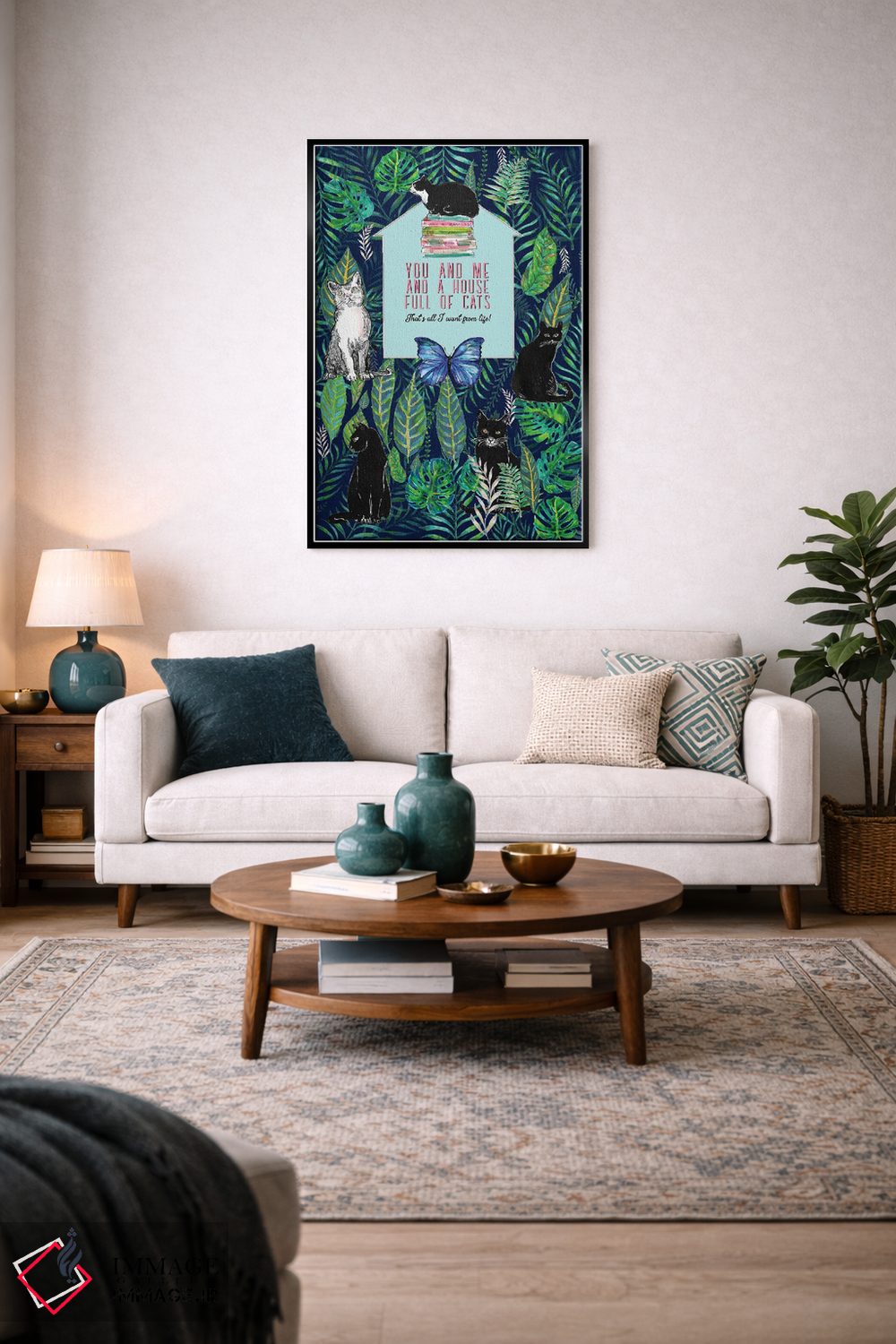 تابلو دکوراتیو تو و من و خانه ای پر از گربه ها اثر فانیتسا پترو