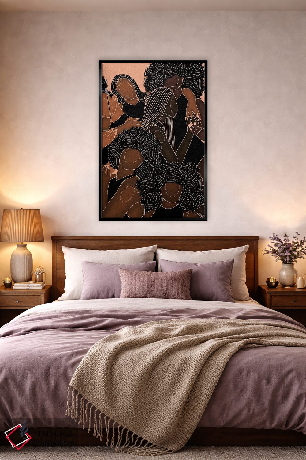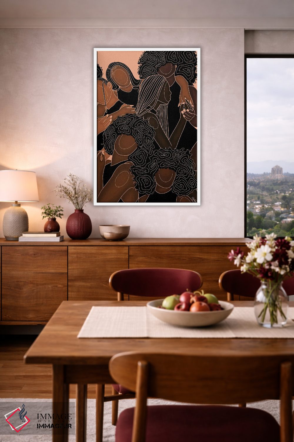 براساس پالت گرم اثر، قاب تیک گرم (چوبی) پیشنهاد اول است و مشکی مات (فریم متوسط) مکمل. برای سفارشهای پروژهای با ابعاد و قابهای اختصاصی با ایماژ در تماس باشید.