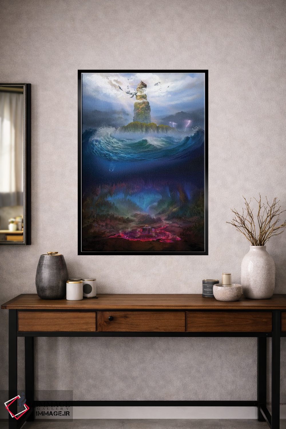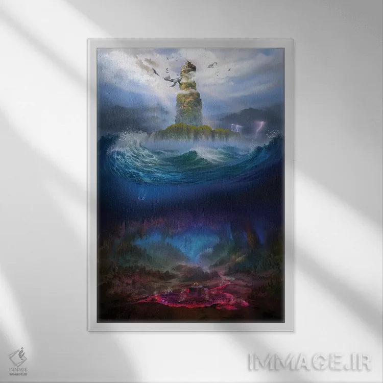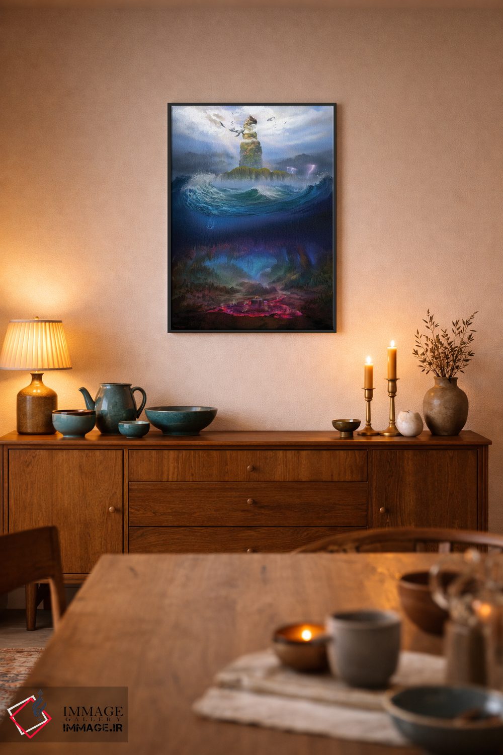 براساس پالت ترکیبی اثر، قاب تیک گرم (چوبی) پیشنهاد اول است و مشکی مات (فریم متوسط) مکمل. برای سفارشهای پروژهای با ابعاد و قابهای اختصاصی با ایماژ در تماس باشید.