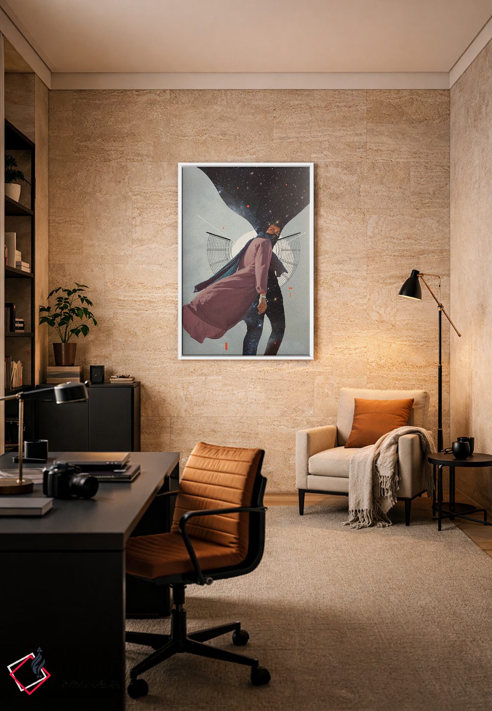 یک تابلوی فضا—محور که کنار نور سرد و دیوارهای تیره، جلوهی ویژهای میگیرد اثرِ «فرانک موس (هنرمند با نام مستعار)».