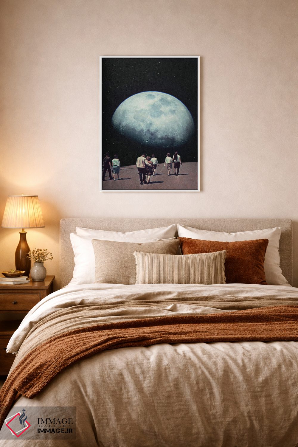 براساس پالت ترکیبی اثر، قاب تیک گرم (چوبی) پیشنهاد اول است و مشکی مات (فریم متوسط) مکمل. برای سفارشهای پروژهای با ابعاد و قابهای اختصاصی با ایماژ در تماس باشید.