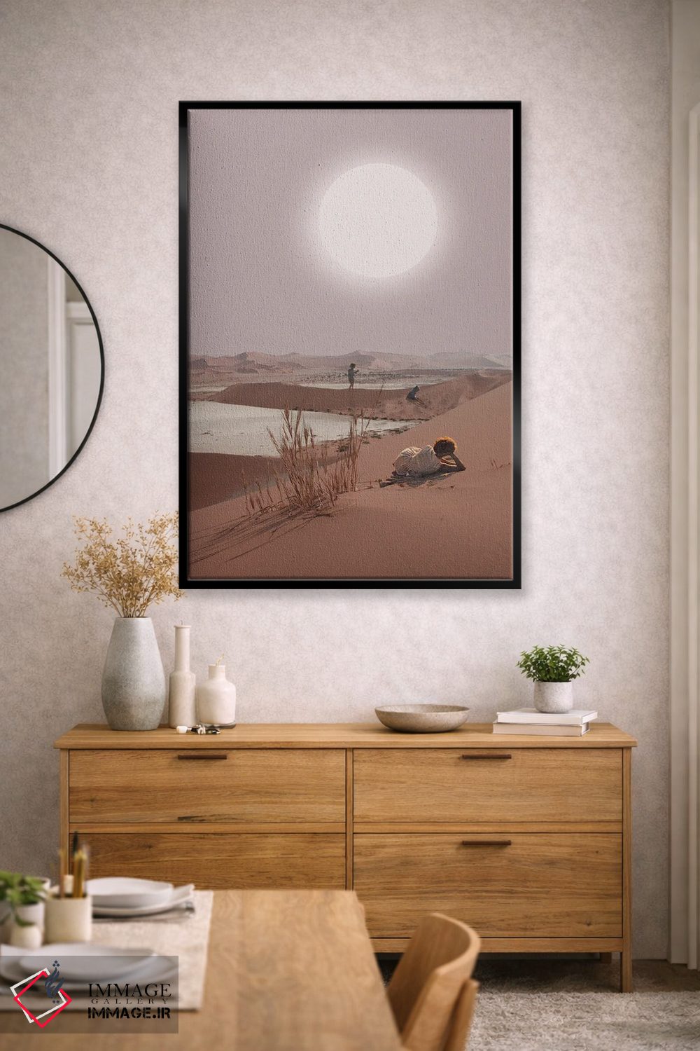 بوم گالری ایماژ طوری طراحی شده که اثر روی دیوار «پرداختشده» و حرفهای دیده شود—نه پرزرقوبرقِ بیپایه؛ بلکه دقیق و خوشپرداخت. بافت ظریف کنواس کمک میکند حس اثر هنری را در نگاه نزدیک نگه میدارد و همین «پرداخت» تفاوت را میسازد. بافت ظریف کنواس کمک میکند باعث میشود سطح کار زندهتر دیده شود و برای محیطهای رسمیتر هم انتخاب مطمئنی است. اگر دوست دارید قاب هم اضافه شود، میتوانید از گزینههای سایت استفاده کنید یا برای انتخاب سفارشی هماهنگ کنید؛ و اگر بخواهید، میتوان چیدمان را برای گالریوال هم پیشنهاد داد.