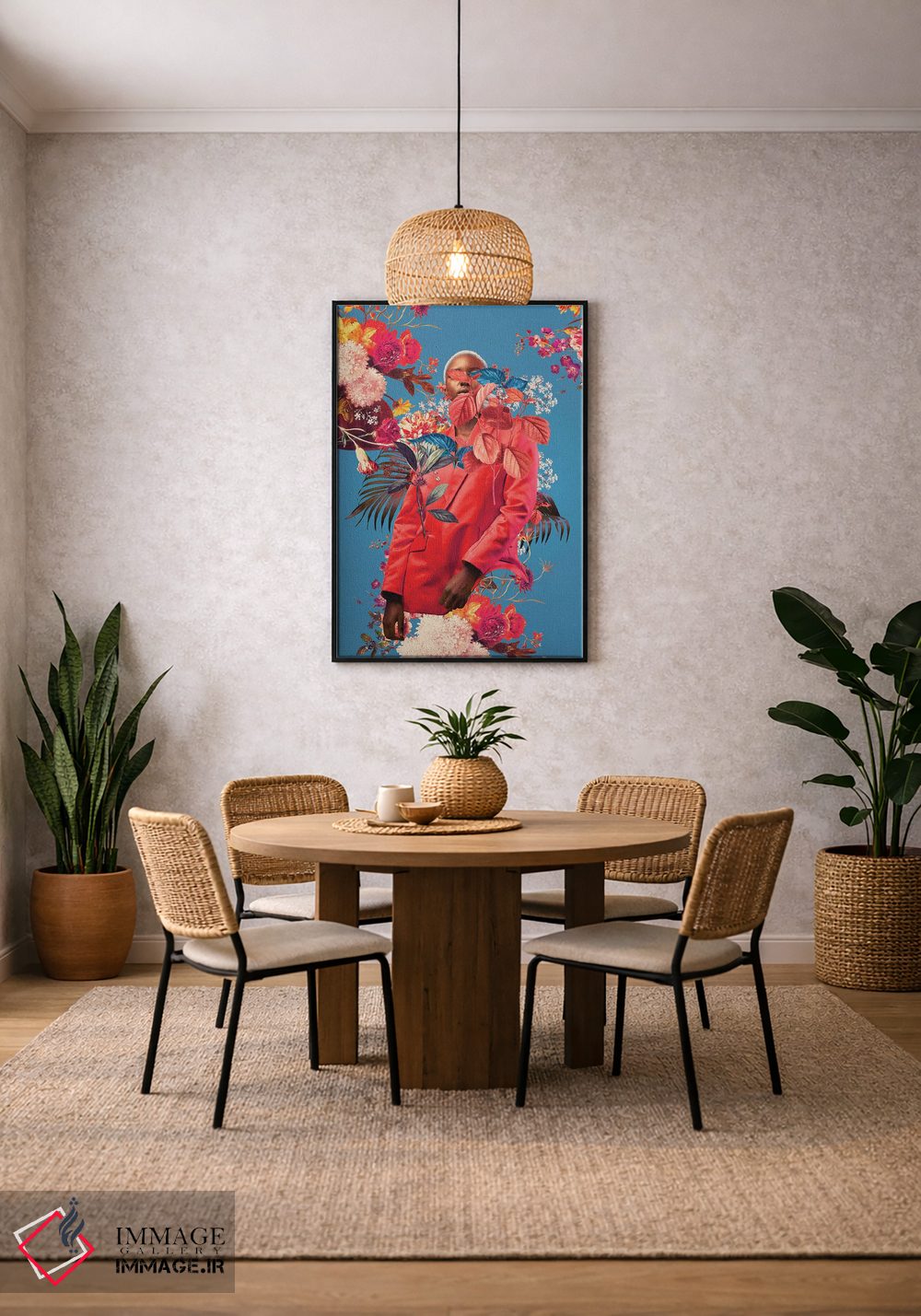 بوم گالری ایماژ طوری طراحی شده که اثر روی دیوار «پرداختشده» و حرفهای دیده شود—نه پرزرقوبرقِ بیپایه؛ بلکه دقیق و خوشپرداخت. بافت ظریف کنواس کمک میکند حس اثر هنری را در نگاه نزدیک نگه میدارد و در دکورهای مدرن و مینیمال خیلی خوب مینشیند. در چاپ جیکلی (Giclée)، گذارهای رنگی را نرمتر میکند. حاصل کار، یک تابلو خوشنشین است که هم از دور اثرگذار است و هم از نزدیک خوشخوان؛ و اگر بخواهید، میتوان چیدمان را برای گالریوال هم پیشنهاد داد. اگر یک اکسنت رنگی کوچک در اکسسوریها تکرار شود، هماهنگی فضا کاملتر میشود.