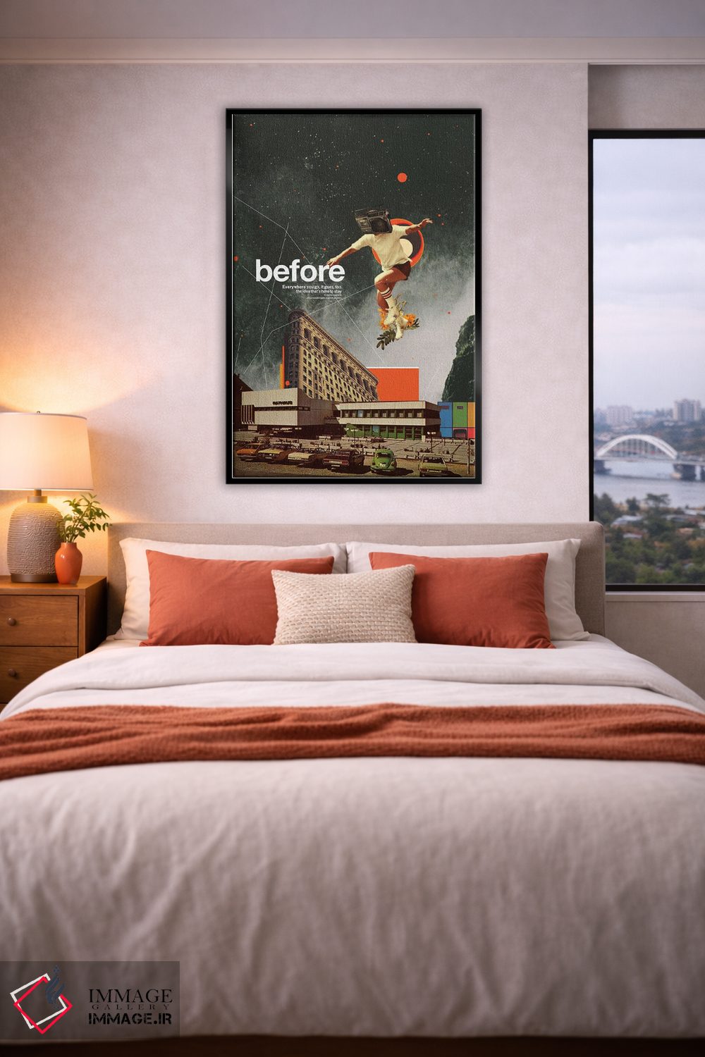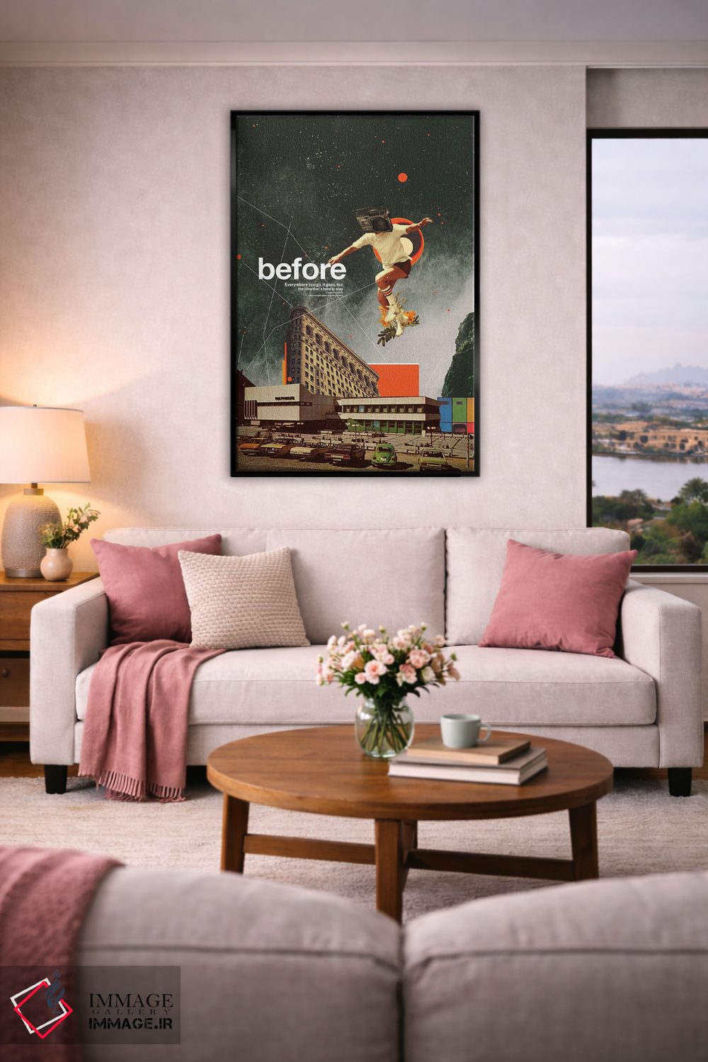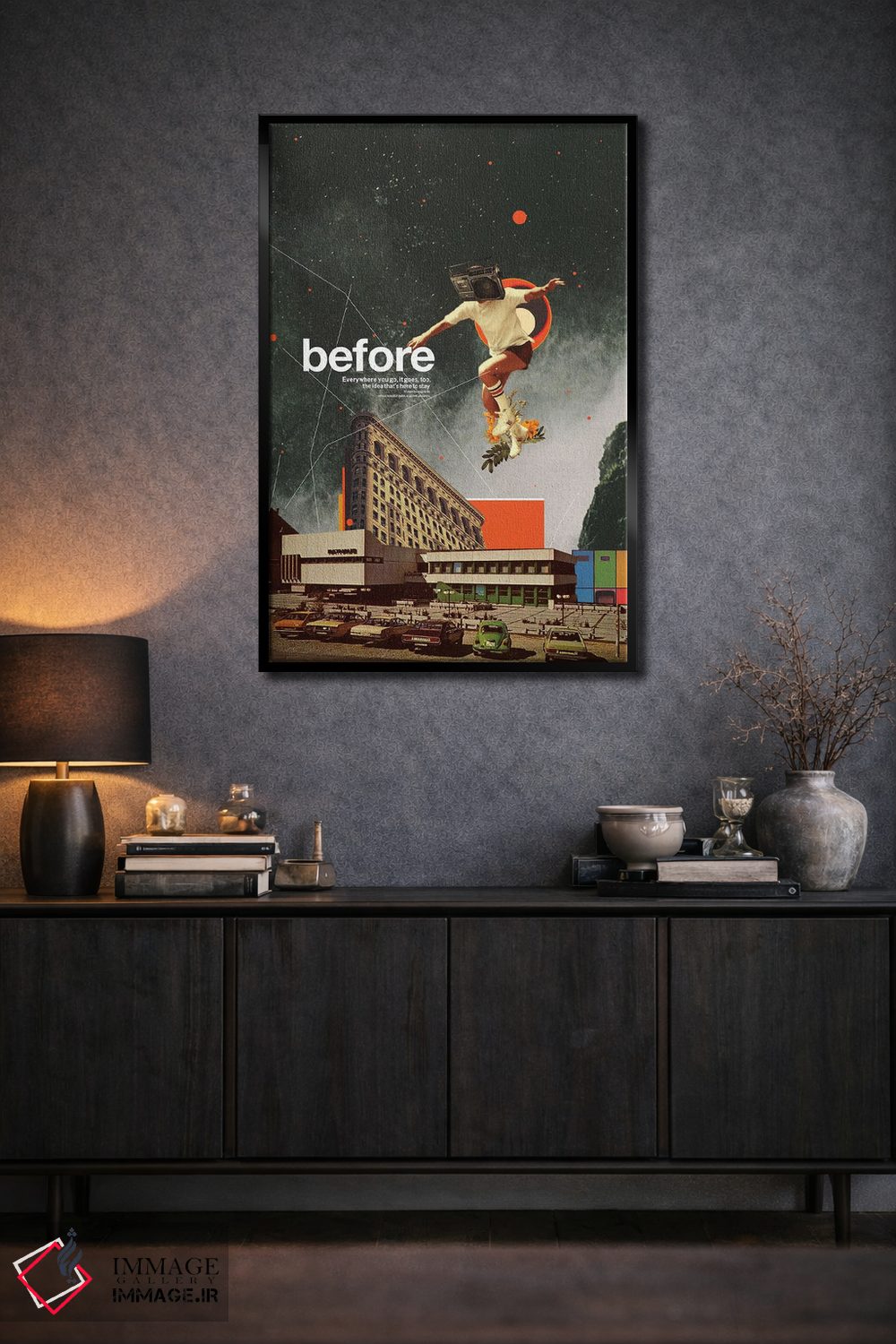 «"قبل"» اثرِ «فرانک موس (هنرمند با نام مستعار)» از آن کارهاییست که در دکورهای جدیتر (نشیمن رسمی یا دفتر کار) عالی مینشیند.