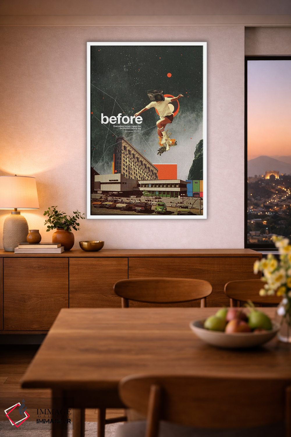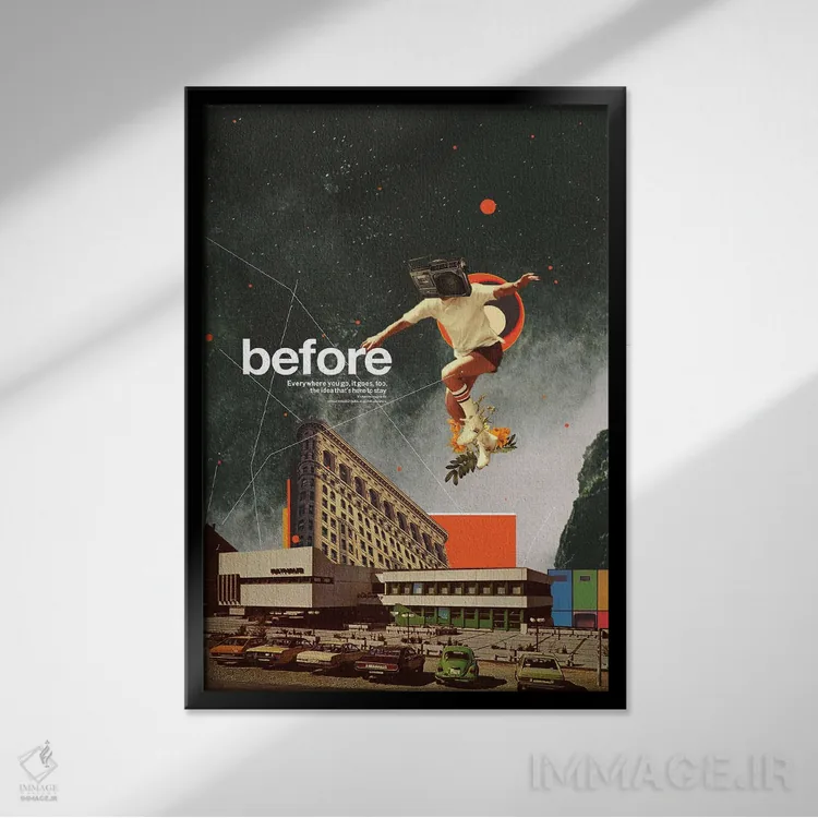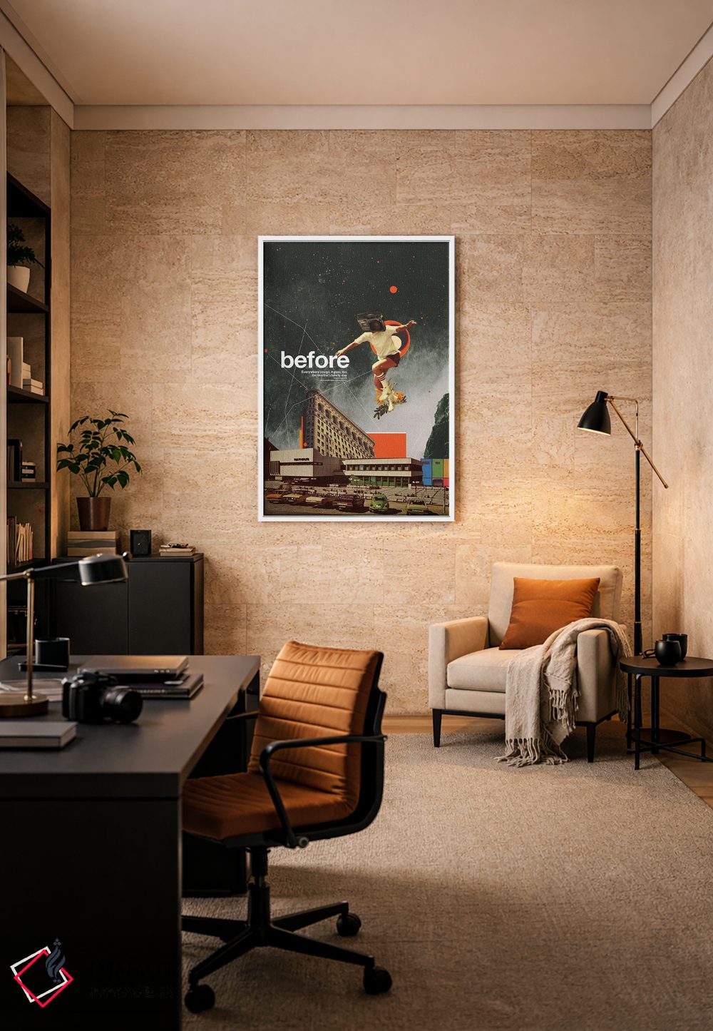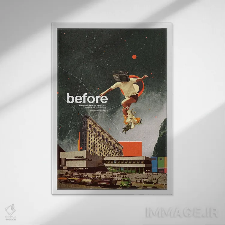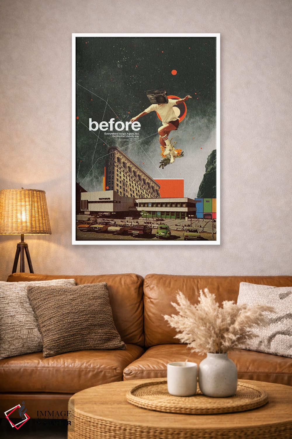 «"قبل"» اثرِ «فرانک موس (هنرمند با نام مستعار)» از آن کارهاییست که در دکورهای جدیتر (نشیمن رسمی یا دفتر کار) عالی مینشیند.