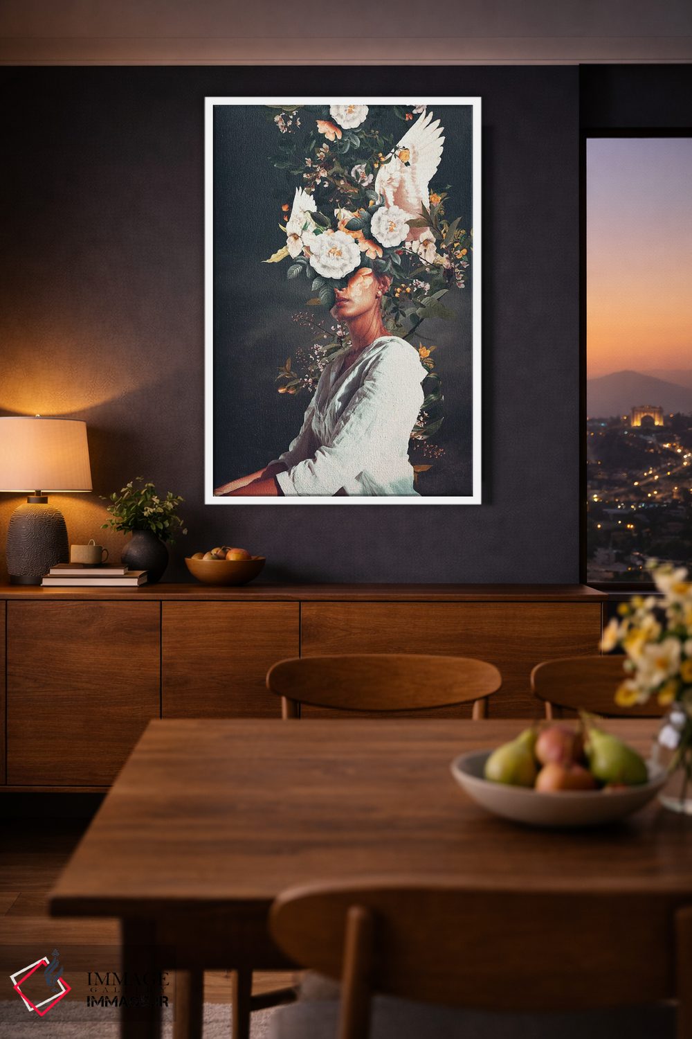 بوم گالری ایماژ نسخهی چیدماناتیوِ حرفهای از یک اثر هنری است. روی کنواس سفیدِ یکدست و بدون اسید با اجرای چاپ هنری جیکلی (Giclée) برای آرتپرینتهای جدی با جوهرهای آرشیویِ حرفهای برای لایههای رنگی خواناتر؛ این ترکیب باعث میشود گذارهای رنگی نرمتر و بافتها خواناتر شوند. هر تابلو بهصورت سفارشی روی چهارچوب کشیده میشود و با یراق مناسب آمادهی نصب است.