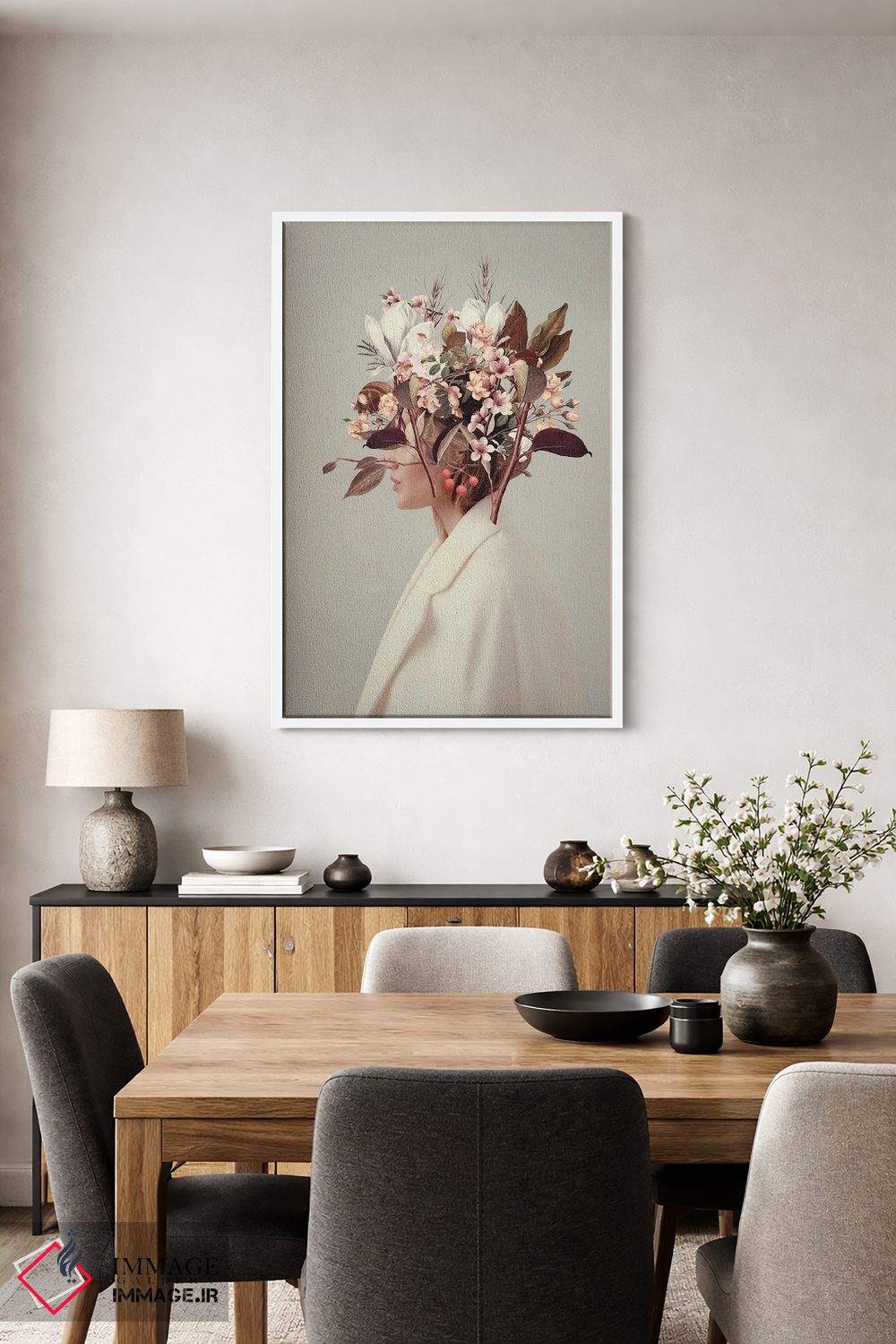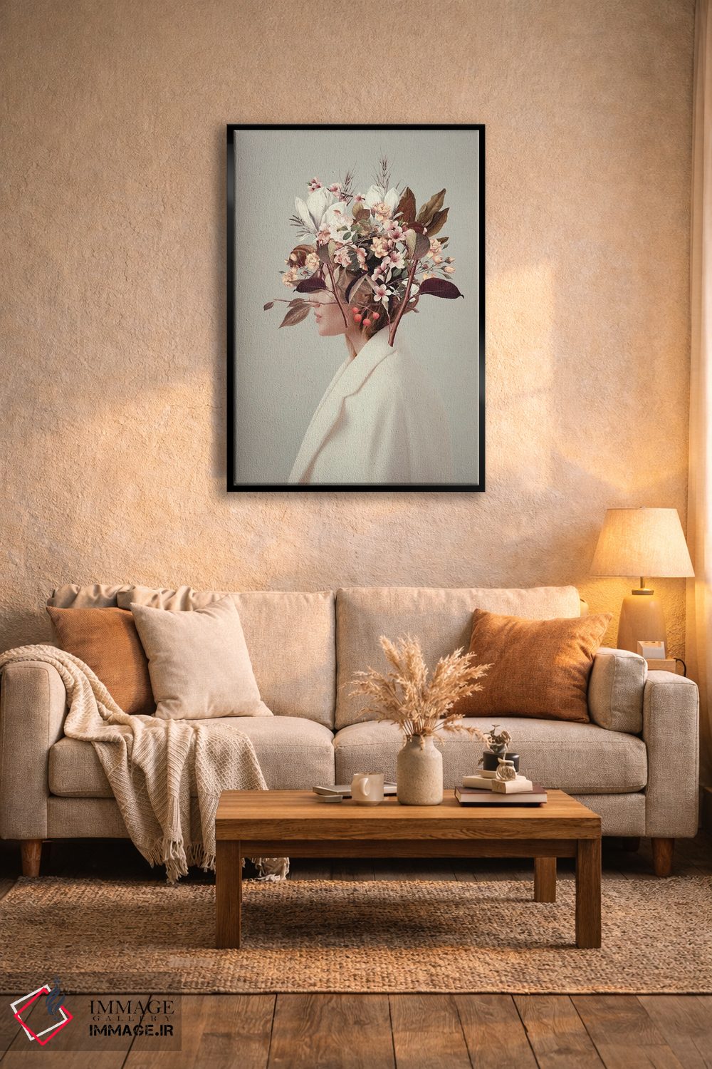 براساس پالت گرم اثر، قاب تیک گرم (چوبی) پیشنهاد اول است و مشکی مات (فریم متوسط) مکمل. برای سفارشهای پروژهای با ابعاد و قابهای اختصاصی با ایماژ در تماس باشید.