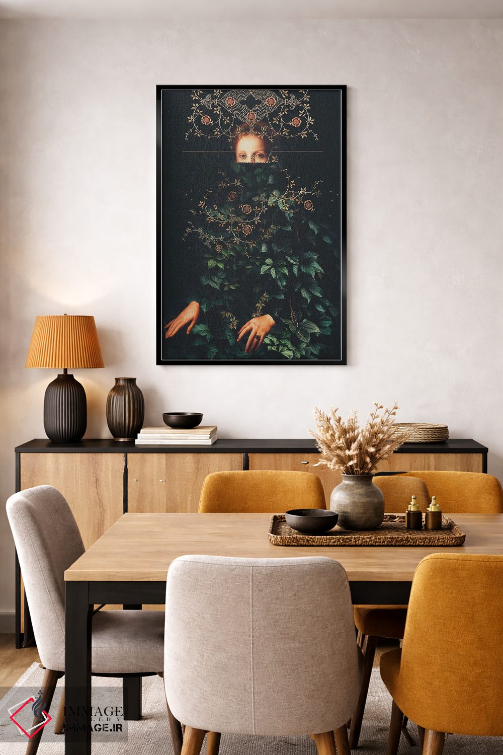 براساس پالت گرم اثر، قاب تیک گرم (چوبی) پیشنهاد اول است و مشکی مات (فریم متوسط) مکمل. برای سفارشهای پروژهای با ابعاد و قابهای اختصاصی با ایماژ در تماس باشید.