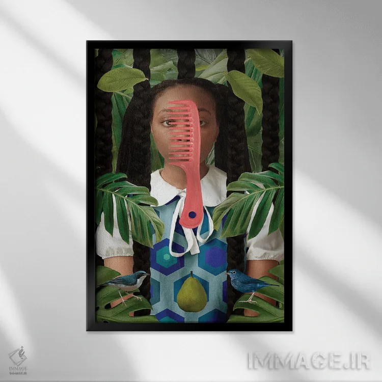 براساس پالت ترکیبی اثر، قاب تیک گرم (چوبی) پیشنهاد اول است و مشکی مات (فریم متوسط) مکمل.