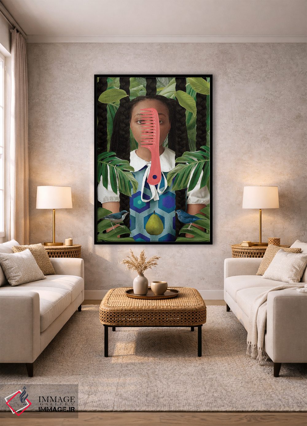 بوم گالری ایماژ نسخهی چیدماناتیوِ حرفهای از یک اثر هنری است؛ روی کنواس سفیدِ یکدست و بدون اسید با اجرای چاپ هنریِ دقیق به روش جیکلی (Giclée) و جوهرهای آرشیوی Epson UltraChrome HDR برای بازنمایی بهتر تونهای حساس؛ حس نهایی نزدیکتر به ارائهی گالریوار است؛ نه صرفاً یک تصویر.