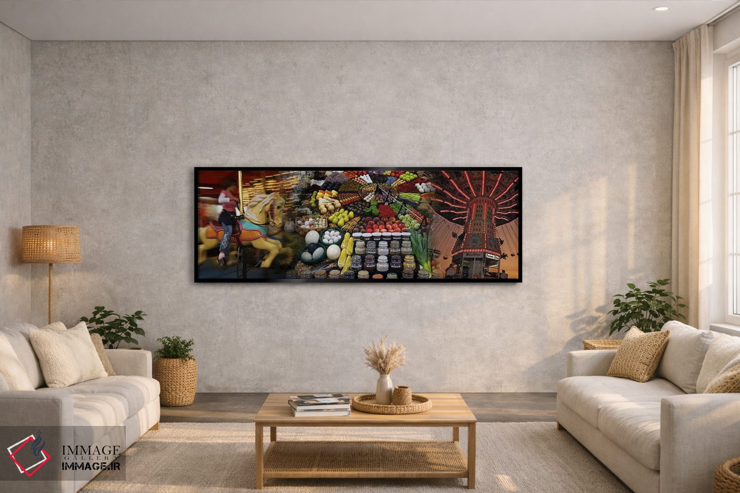 در «نمایشگاه ایالتی» اثرِ «پانورامیک ایمجز (استودیو عکاسی عریض)»، اتاق را مرتبتر و منسجمتر نشان دهد؛ برای لابی و فضاهای رسمی انتخابی خوشسلیقه است. برای دیوار گالری هم گزینهٔ خوبیست.