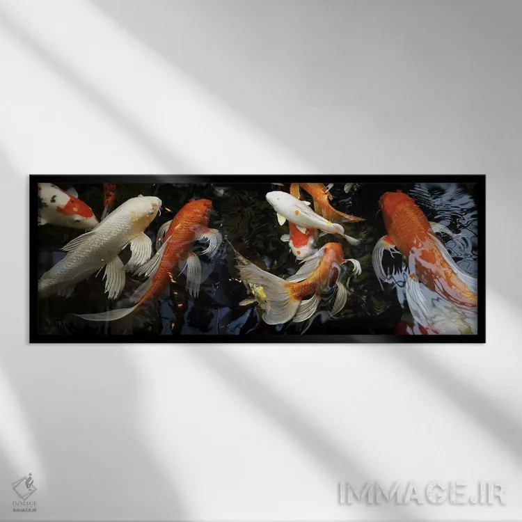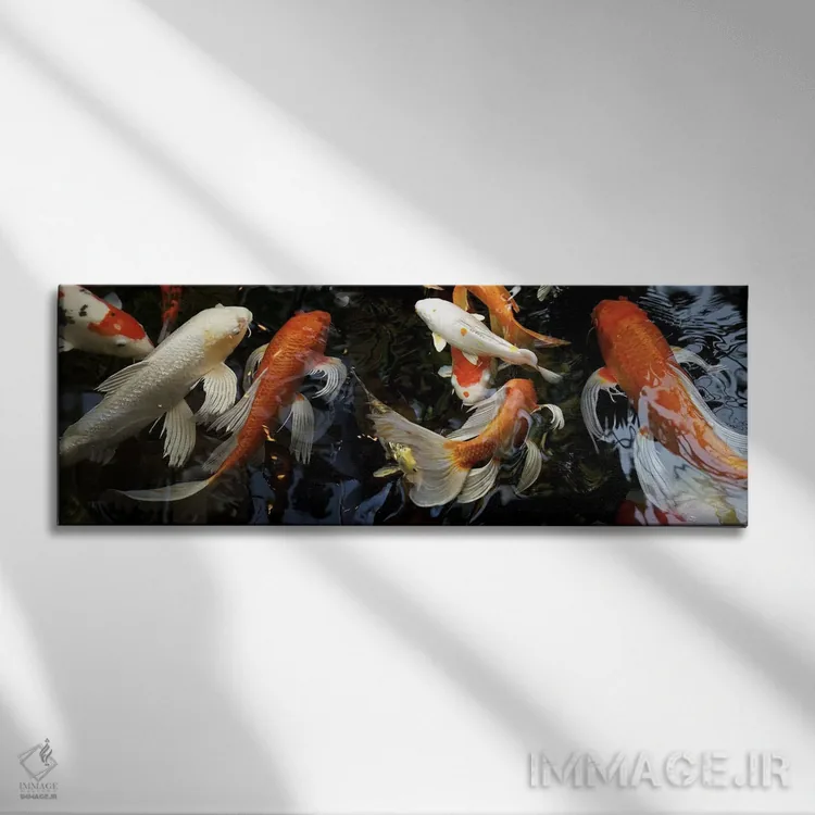 تابلو دکوراتیو ماهی های کوی در حال شنا زیر آب اثر پانورامیک ایمجز