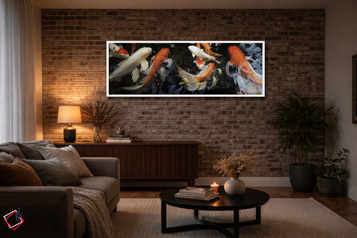 اگر میخواهید دیوار کمی سرزندگیِ محترمانه داشته باشد، «ماهیهای کوی در حال شنا زیر آب» اثرِ «پانورامیک ایمجز (استودیو عکاسی عریض)» فضا را صمیمیتر و دعوتکنندهتر نشان میدهد، برای دیوار کنار میز کار گزینهٔ مناسبیست. هم فضا را گرم میکند، هم شلوغش نمیکند.