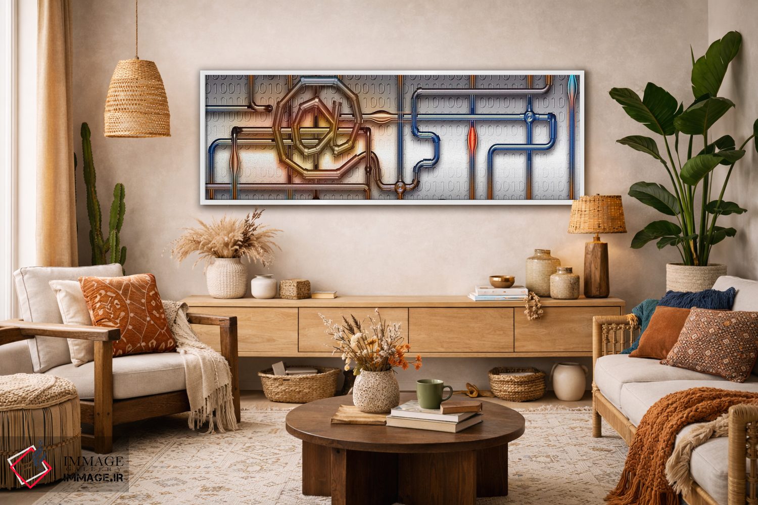 بوم گالری ایماژ نسخهی چیدماناتیوِ گالریپسند از یک اثر هنری است؛ روی کنواس سفیدِ یکدست و بدون اسید با اجرای چاپ هنری جیکلی (Giclée) برای آرتپرینتهای جدی و جوهرهای آرشیوی Epson UltraChrome HDR برای بازنمایی بهتر تونهای حساس؛ حس نهایی نزدیکتر به ارائهی گالریوار است؛ نه صرفاً یک تصویر. هر تابلو بهصورت سفارشی روی چهارچوب کشیده میشود و با یراق مناسب آمادهی نصب است.