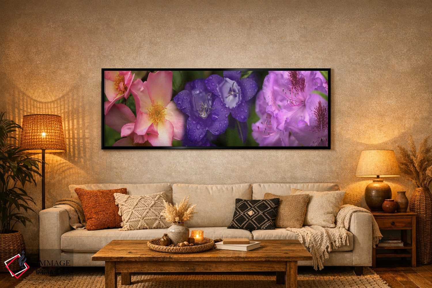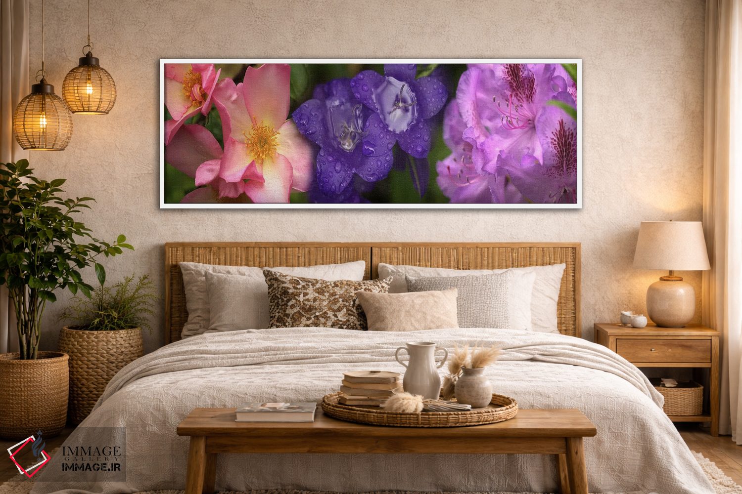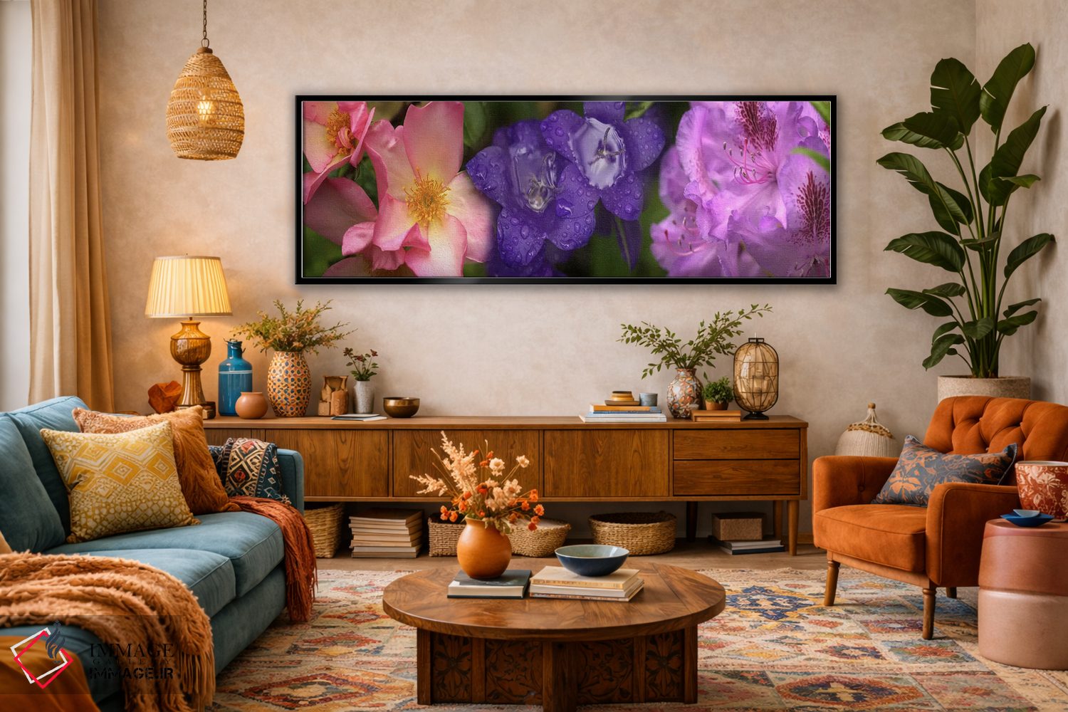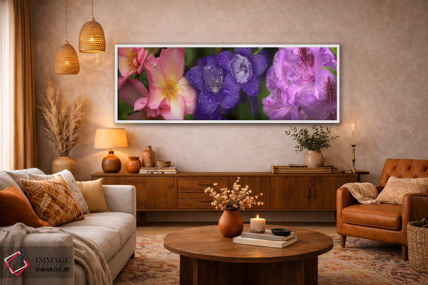 «نمای نزدیک از گلها» اثرِ «پانورامیک ایمجز (استودیو عکاسی عریض)» میتواند دیوار را از تزئین به «حضور» تبدیل کند؛ برای دیوار بالای کنسول یا شومینه پیشنهاد میشود. برای فضاهایی که دنبال «وقار» هستند، انتخابی مطمئن است.