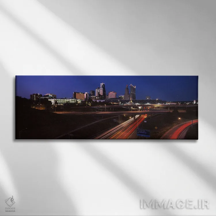 تابلو دکوراتیو تقاطع بزرگراه و افق شهری در غروب، کانزاس سیتی، میزوری… اثر پانورامیک ایمجز
