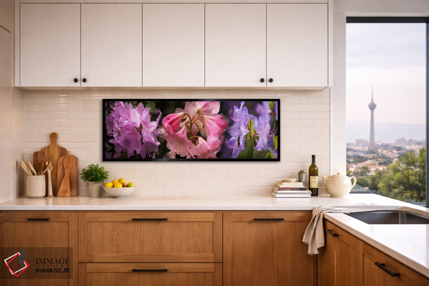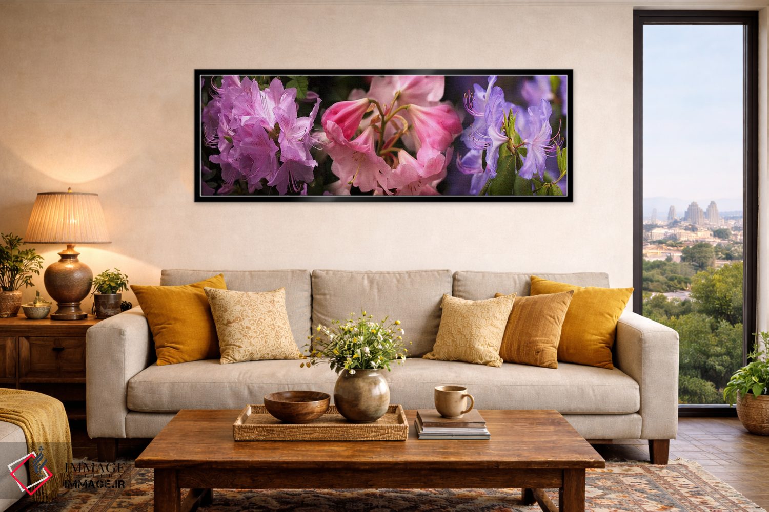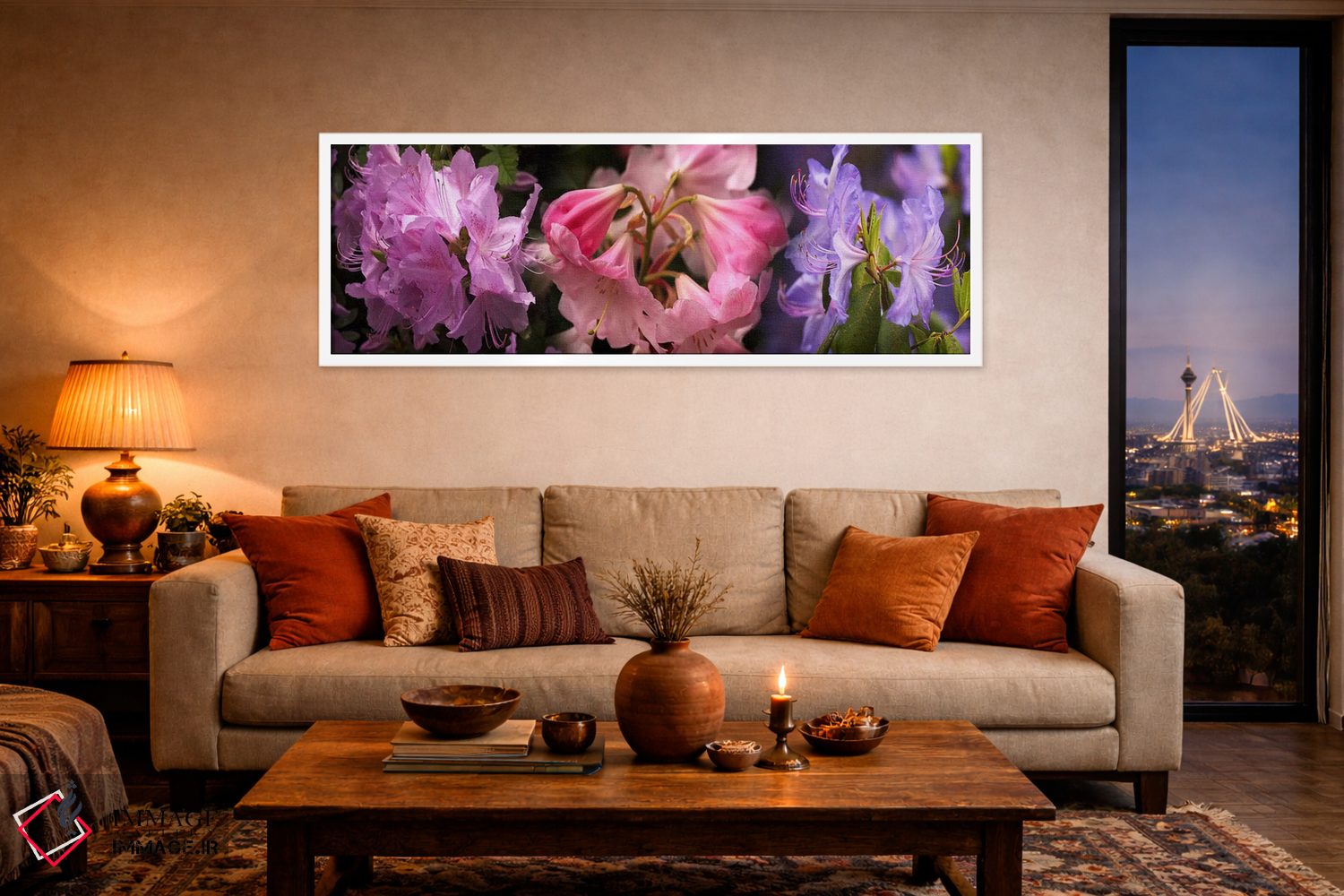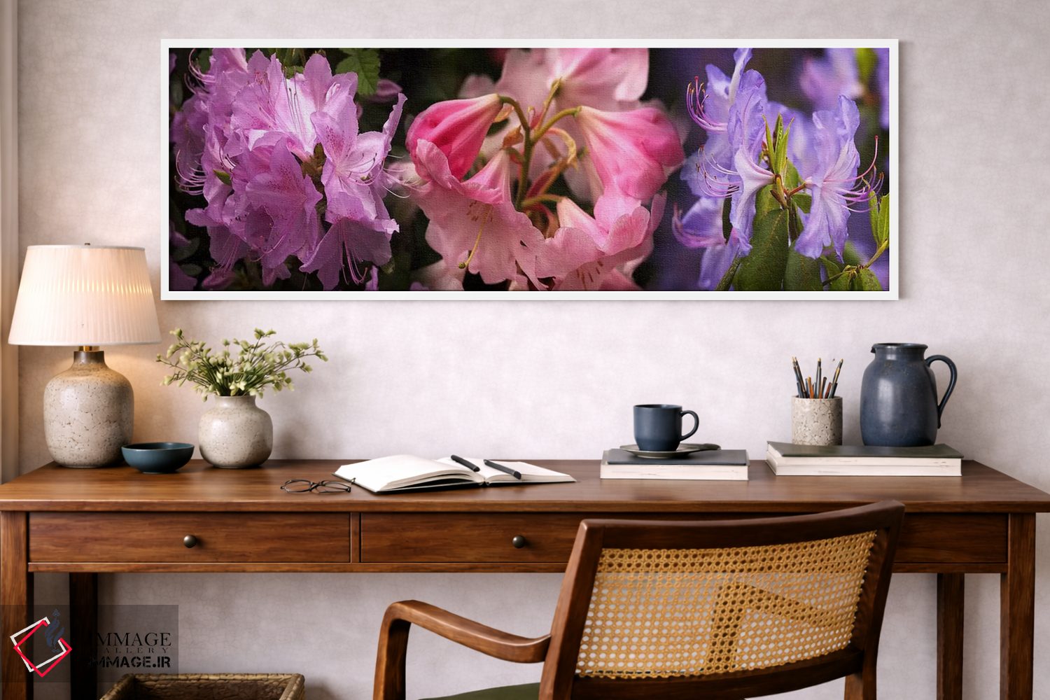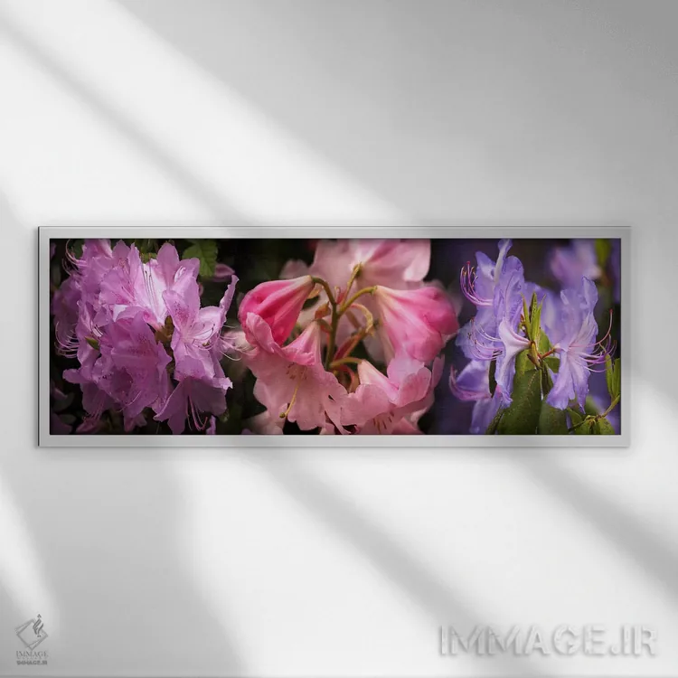 در این اثر، «گلهای رودودندرون رنگارنگ» اثرِ «پانورامیک ایمجز (استودیو عکاسی عریض)» فضا را روشنتر و زندهتر نشان میدهد؛ برای دکورهایی که بافت و جزئیات در آن مهم است پیشنهاد میشود. حضورش روی دیوار «مرتب» است؛ نه پر سر و صدا، نه بیاثر.